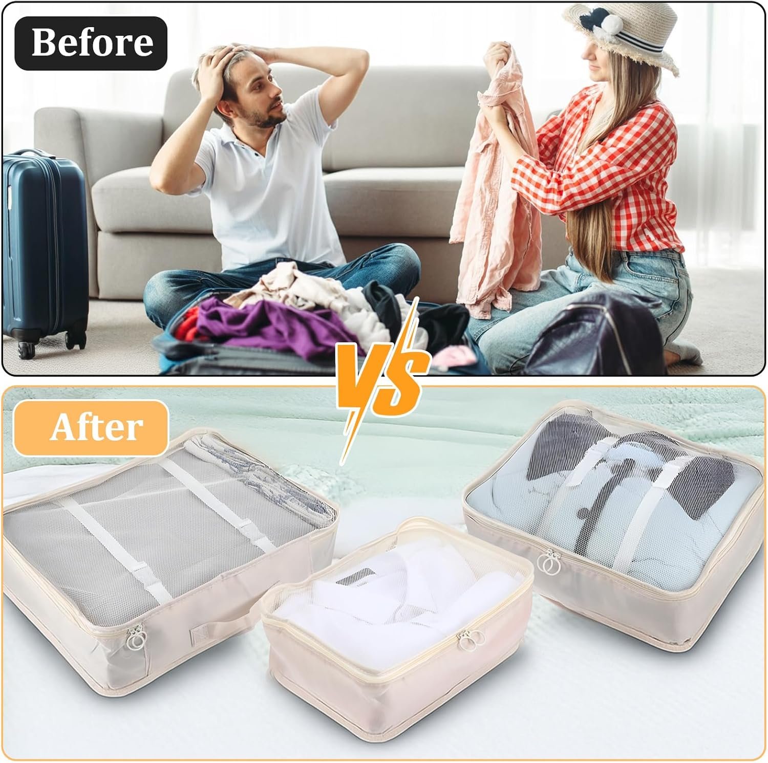 Convenient and Portable: our packing cubes for suitcases adopt the double zipper design, which is easy to open and close, bringing you safety and convenience in daily use; There is a handle at the top, which is convenient to carry and brings you a caring experience