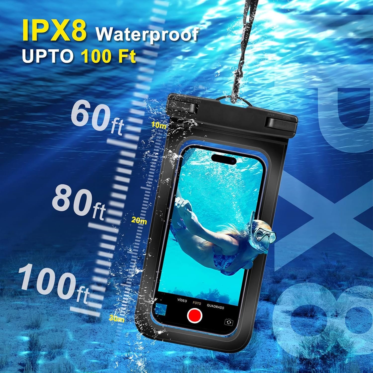 [Clear Picture Underwater] With the transparent material,you can catch your moment underwater and clear picture,but【NOTE】Cell phone may suffer hydraulic pressure under certain water depth , which will imfact the operation of the touchscreen.Please take photos by volume buttons in this case