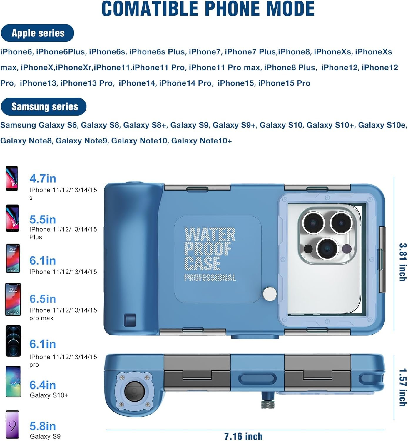 🤽♀️【Compatible Phone Models】 The upgraded waterproof phone case for diving and snorkeling in 2025 is compatible with most 4.7-6.9 inch phone series: iPhone 6/ 6 Plus/ 6s/ 6s Plus/ 7/ 7 Plus/ 8/ 8 Plus/, iphone X/ Xs/ Xs Max/ XR, iphone 12/ 12 Pro/ 12 Pro Max, iphone 13/ 13 Pro/ 13Pro Max, iphone 14/ 14 Pro/ 14 Pro Max,iphone 15/ 15 Pro/ 15Pro Max,iphone 16/ 16 Pro/ 16Pro Max/iphone 17/ 17 Pro/ 17Pro Max etc.