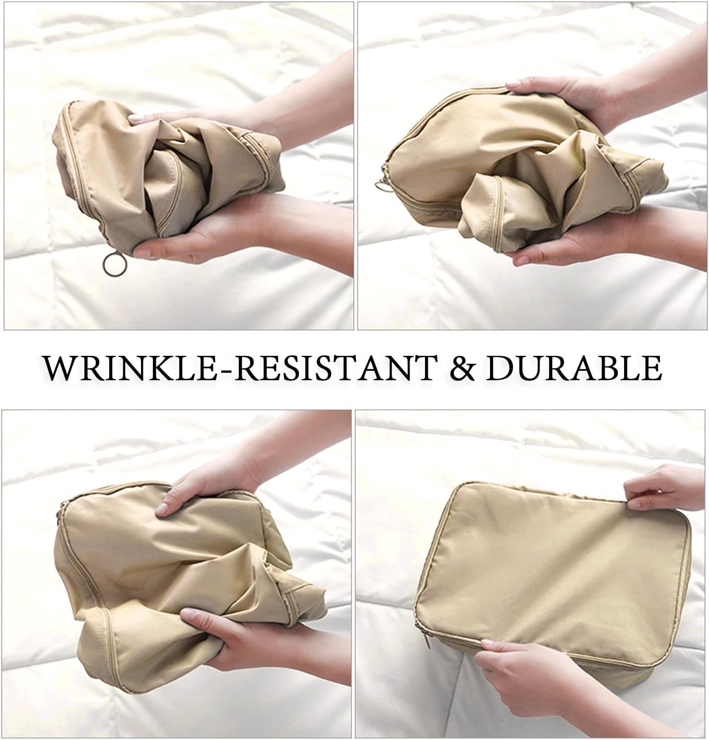 【High-Quality, Sturdy Material】-Crafted from premium waterproof and thickened polyester, our packing cubes feature precise double stitching to withstand travel wear and tear; The durable metal two-way zipper glides smoothly for long-lasting performance.