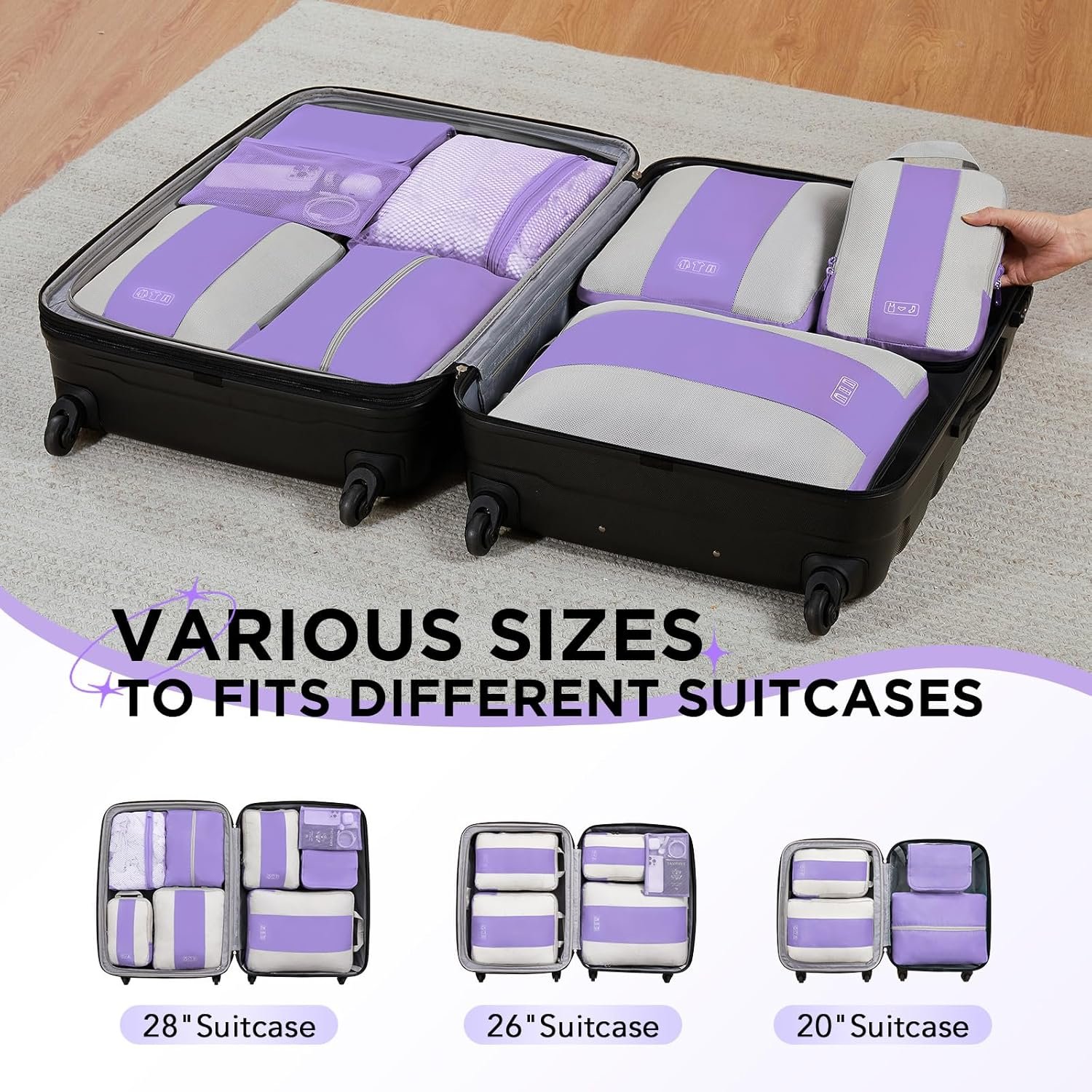 Ready for Any Adventure – Whether you’re heading out for a weekend getaway, a business conference, or a mid-length travel, this High-Capacity 8-Piece Compression Set perfectly fits 20-28-inch suitcases, effortlessly handling all travel scenarios. We’re here to ensure you travel smarter, pack better, and enjoy every moment of your journey with peace of mind.