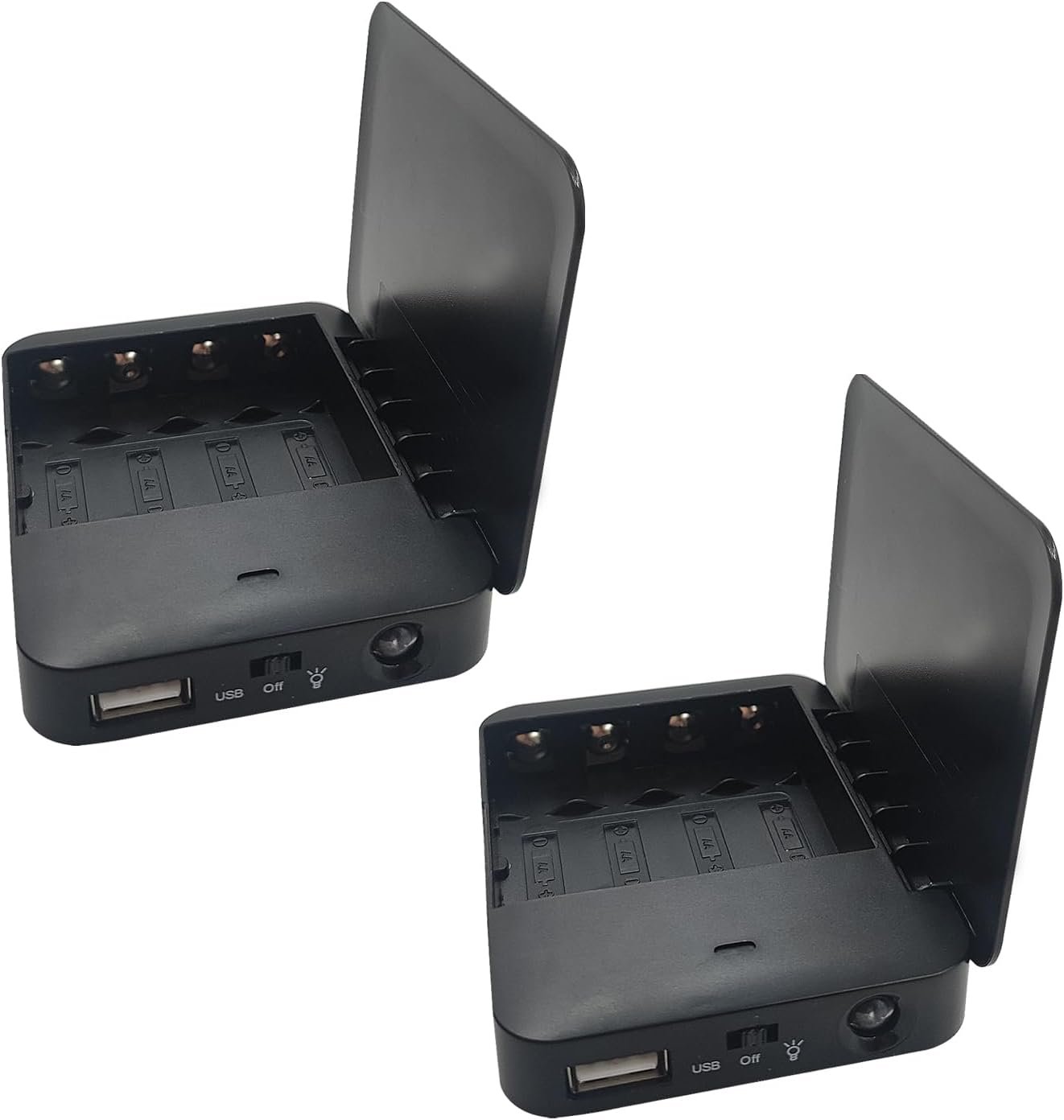 Battery Operated Phone Charger with LED|EmergencyUSB Battery Powered Power Bank Portable 4 AA Batteries Powered Outlet (2Pack Black)