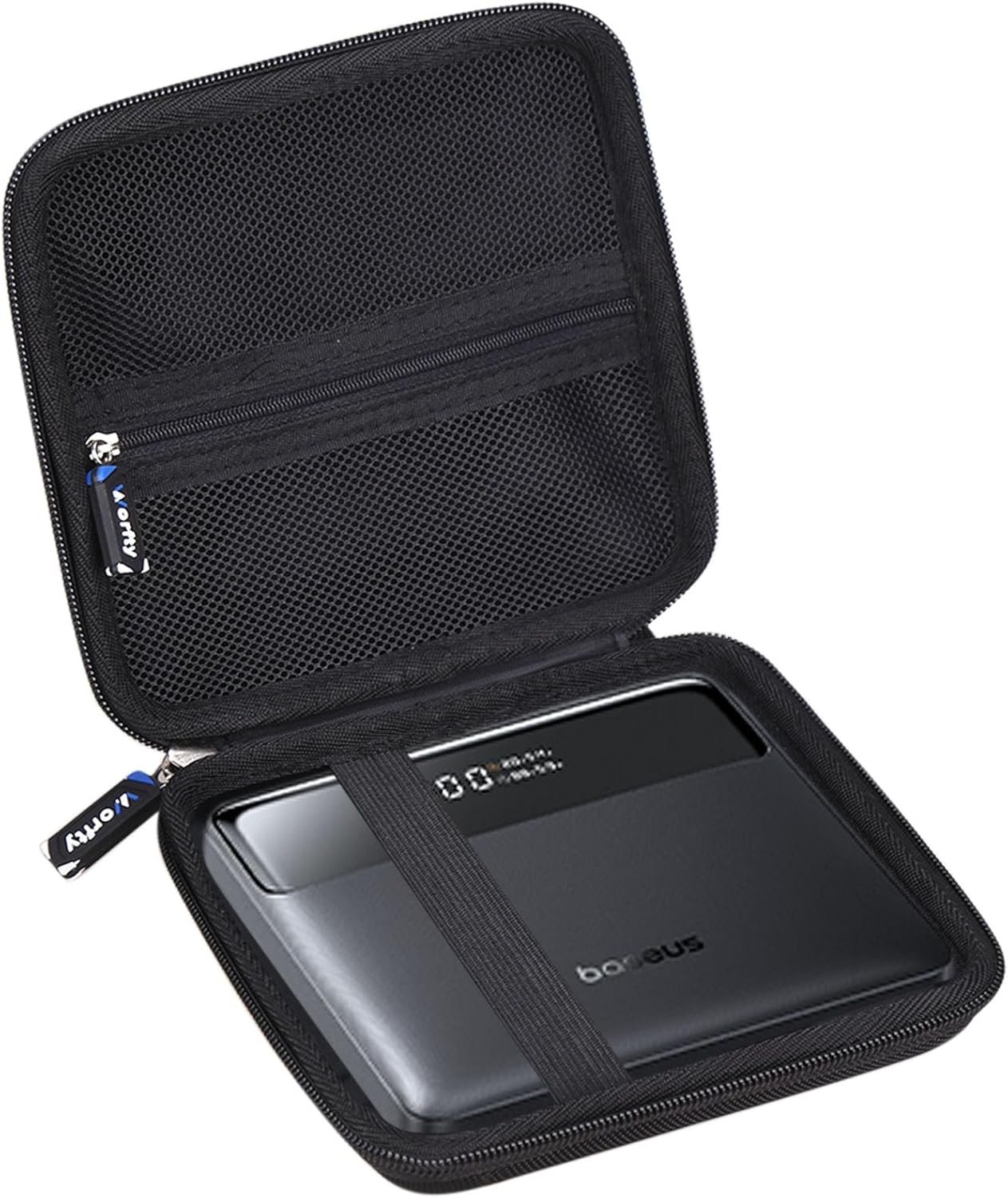 Premium Storage Case for Baseus 20000mAh 100W Power Bank – Worfty EVA Hard Case Specifically designed to provide a seamless fit for your Baseus 20000mAh 100W Power Bank Portable Charger (model PPBLD100HD), this Worfty storage case offers tailored protection for the sleek Baseus blade portable laptop charger. Engineered with precision, the case ensures your device remains shielded from daily wear, scratches, and accidental damage, making it an essential accessory for both travel and storage. Constructed from high-quality three-layer EVA material, the case combines a shockproof outer shell with a soft flannel lining to deliver multi-dimensional protection. The robust EVA exterior is designed to resist impacts, water, and tears, while the plush interior prevents scratches and abrasions, keeping your power bank in pristine condition. Detailed dimensions are available in product images, showcasing the case’s compact design that perfectly accommodates the 20000mAh 100W Power Bank without adding unnecessary bulk. Despite its slim profile, the case features a built-in mesh pocket, offering convenient storage for accessories such as charging cables, adapters, or small electronic items. The soft rubber zipper head ensures smooth and effortless opening and closing, while the durable zipper track withstands frequent use. The interior’s velvet-like lining further enhances protection, cushioning the power bank against jostling during transit and preventing accidental scratches that can occur in bags or luggage.
