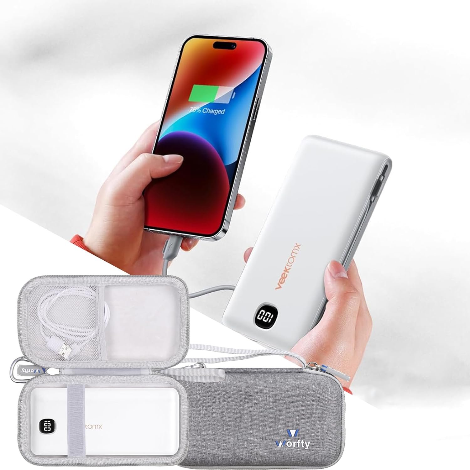 Specially designed for a perfect fit with your VEEKTOMX Portable Charger, the Worfty Case flawlessly protects your 10000mAh/20000mAh Power Bank from scratches and damage with high-quality EVA construction featuring a shockproof outer shell and soft flannel lining that’s scratch-proof, water-resistant, and shockproof. Made from premium three-layer EVA, this case is shockproof, water-resistant, tear-resistant, and compactly guards your power bank—detailed inner/outer dimensions in images let you verify fit before purchase for peace of mind. Equipped with a built-in mesh pocket for accessories and a soft zipper pull for easy access, its soft velvet lining prevents accidental damage during transport or travel. Ideal for storage or travel, this EVA hard case offers durable, reliable protection to keep your VEEKTOMX Power Bank in optimal condition and extend its lifespan (case only).Whether traveling or storing your device, this EVA hard case provides durable, reliable protection to keep your VEEKTOMX Power Bank in optimal condition and extend its service life.