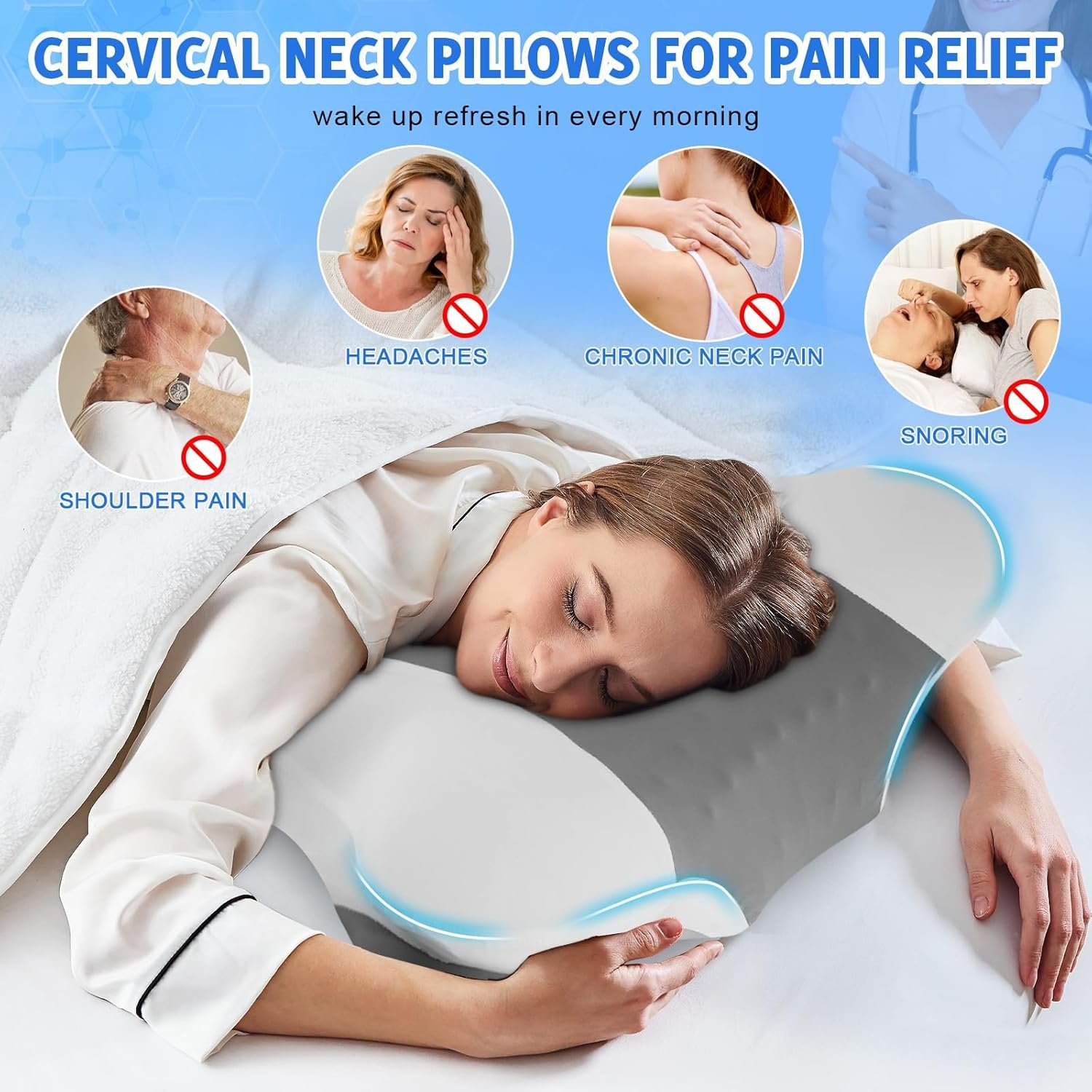 End Morning Neck Pain With A Good Pillow – Ergonomic support pillows for someone who all night struggling with stiff necks or restless sleep. Our dual-layer memory foam pillows cradles your head and neck in perfect alignment. With improved hollow centre and neck massage point groove prevents strain for desk workers, gamers, and phone users. Wake up refreshed – no more shoulder tension or midnight adjustments!