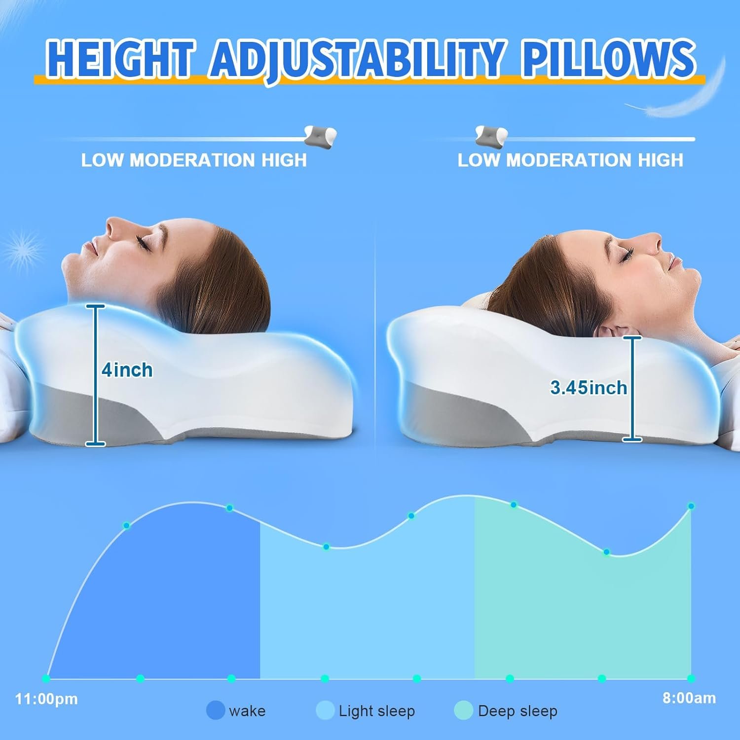 Cervical Neck Pillow for Side Sleepers – Cooling Contour Memory Foam Pillows Ergonomic Neck Support Adjustable Bed Pillows for Neck Comfort – Ideal Christmas Birthday Gift for Women Men