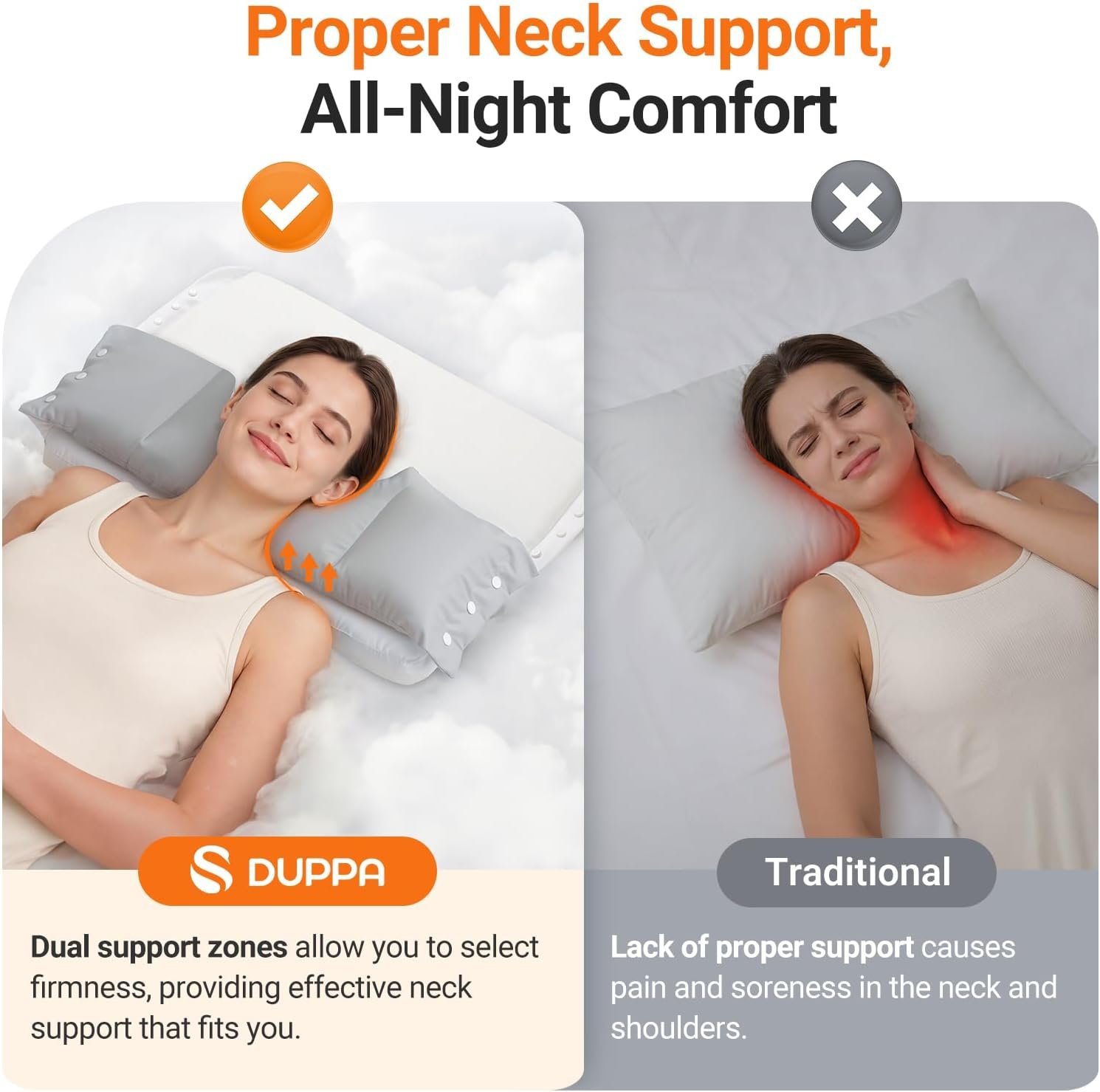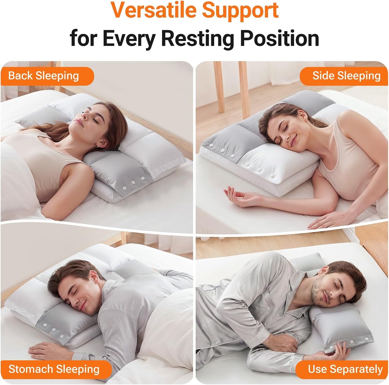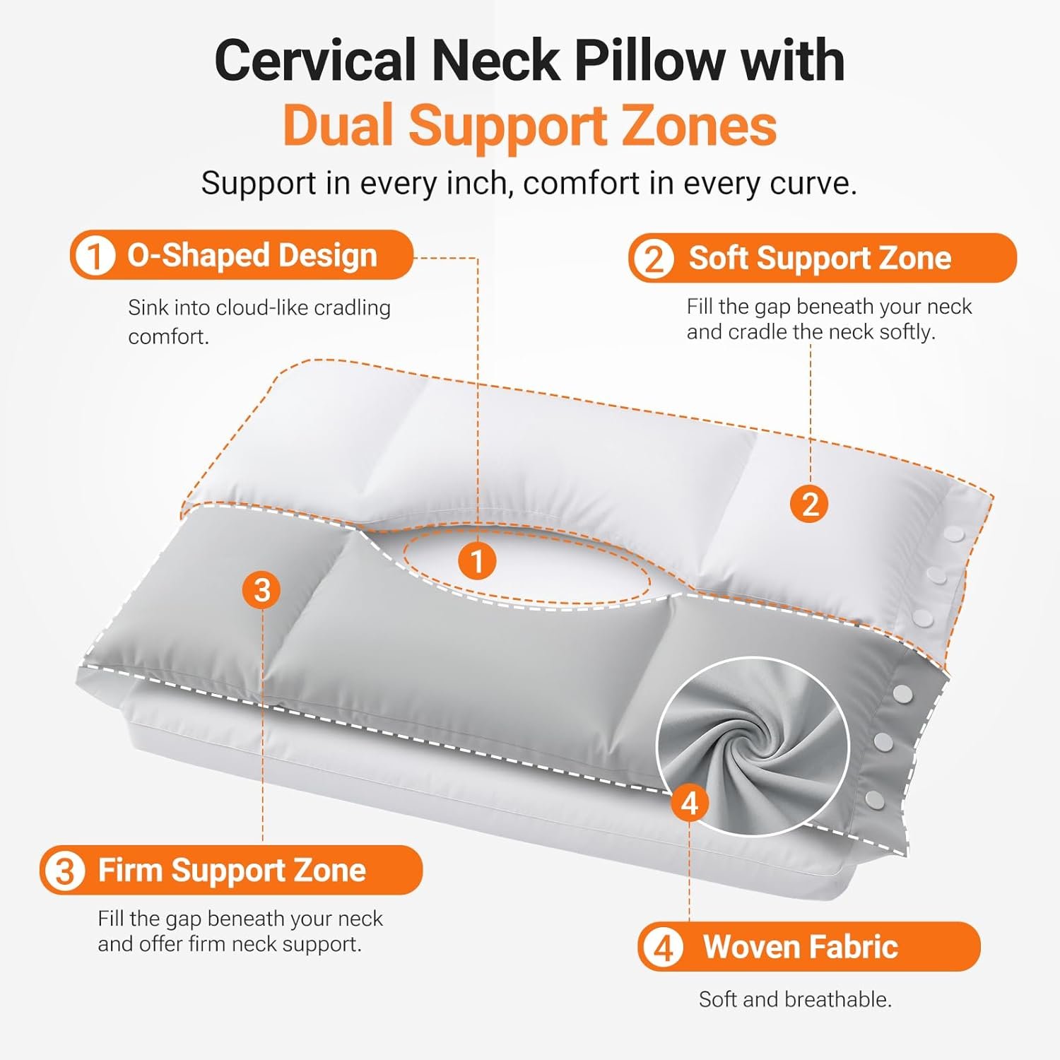 Thoughtful Designs, Pure Comfort: This pillow for neck support features a woven fabric pillowcase for a soft and breathable sleep experience that you’ll love. With snap buttons on both sides, you can easily remove one of the upper pillows according to your preference—or remove both to use the lower layer alone as a low-loft memory foam cervical pillow if needed. Additionally, the zipper design makes it easy to remove the outer pillowcase for cleaning