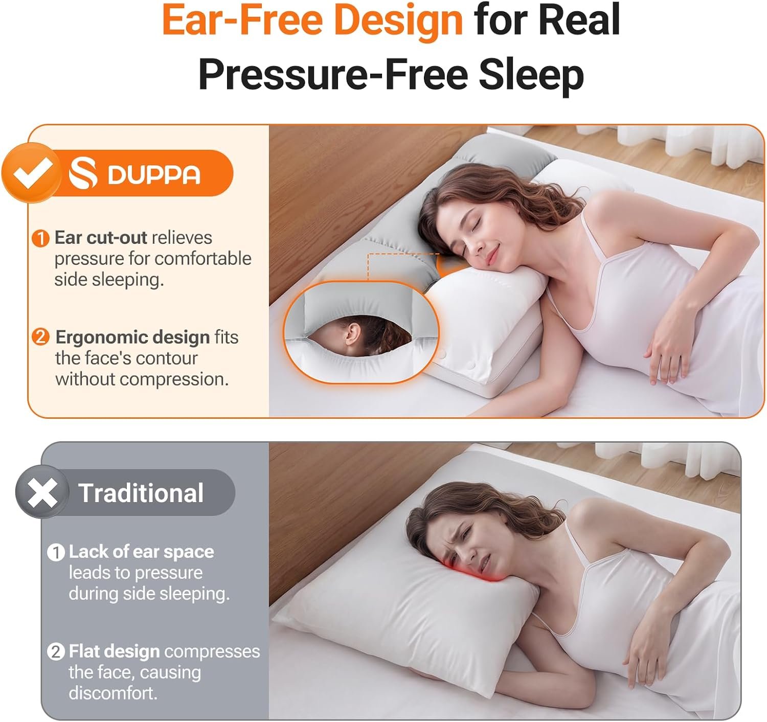 O-Shaped Cutout: Sink into Cloud-Like Comfort: Featuring an O-shaped cutout, this ear piercing pillow gently cradles your head, helping it settle into a natural, relaxed position—like sinking into a cloud that melts away stress and fatigue. The cutout also creates space around your ears and face, reducing pressure for side sleepers and headphone users. Whether you sleep on your back, side, or stomach, this neck pillow for sleeping adapts seamlessly. Now, enjoy truly stress-free sleep every night