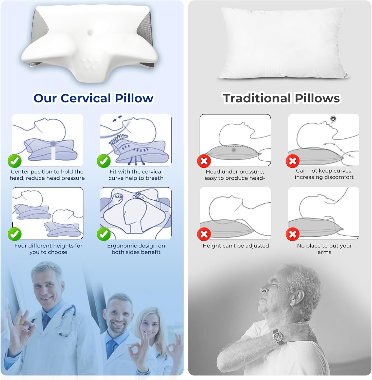 🎁【Great Gift Choice】 Our pillow effectively prevents cervical vertebrae problems and helps reduce sleepless nights. Perfect gift choice for dad, mom, girlfriends, boyfriends, husbands, wife & colleagues, older women, birthdays, and New Year gifts. Elevate your loved ones’ sleep experience with our best pillows for sleeping.
