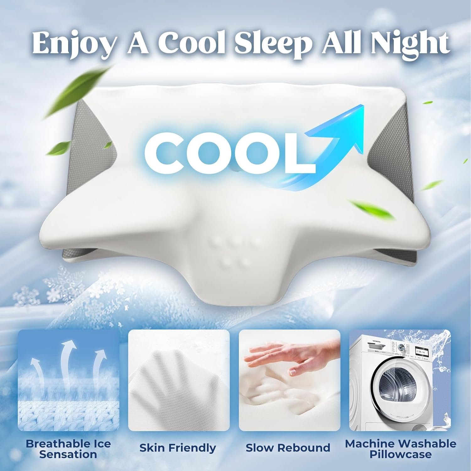 Cervical Pillow for Neck Pain Relief, Cooling Contour Memory Foam Pillows Support Odorless Ergonomic Neck Pillow