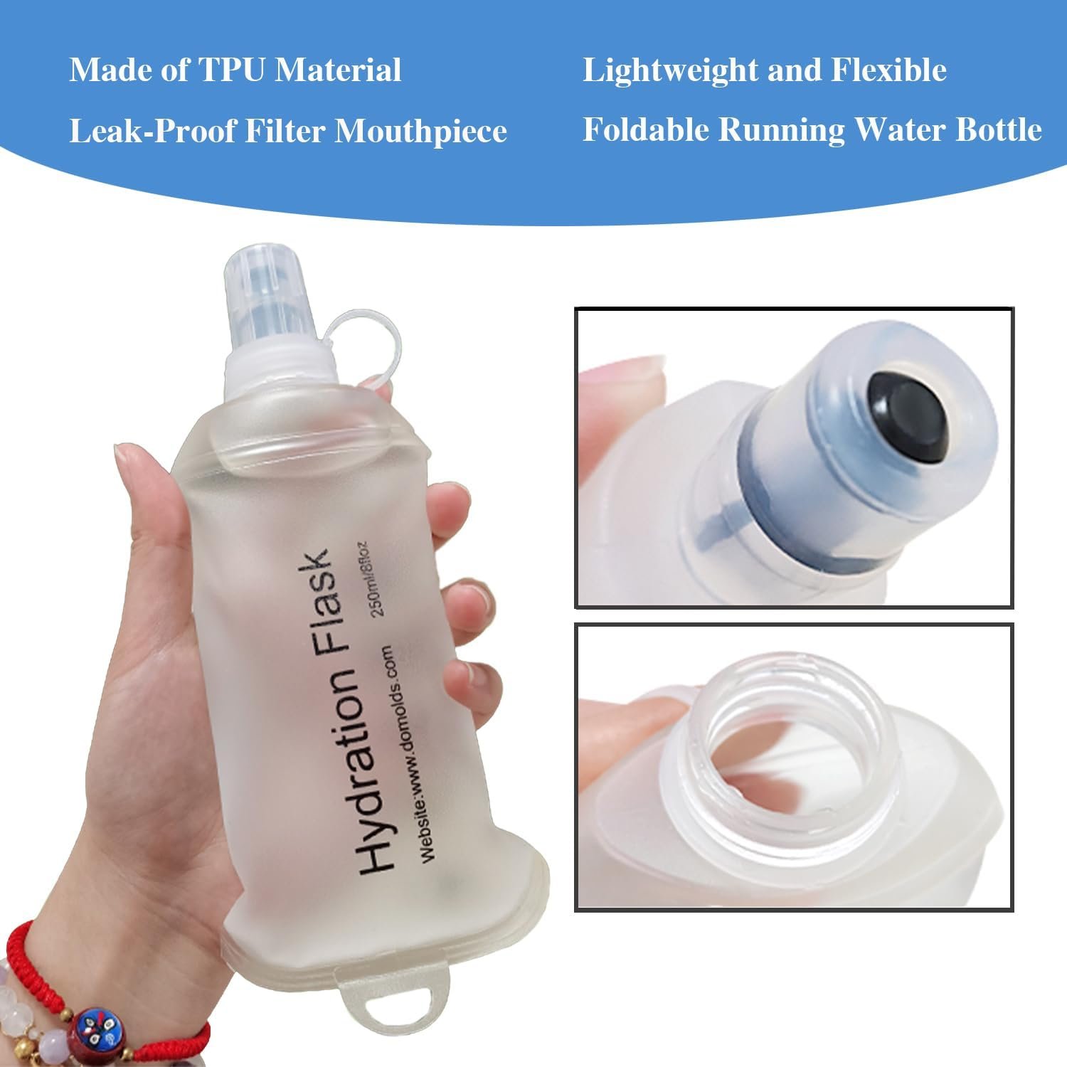 Design details: This soft water flask is equipped with a 20-millimeter-wide bottle cap and a high-flow control valve, enabling you to replenish water easily and quickly. You just need to gently bite open the valve opening without having to stop walking or take off your backpack.