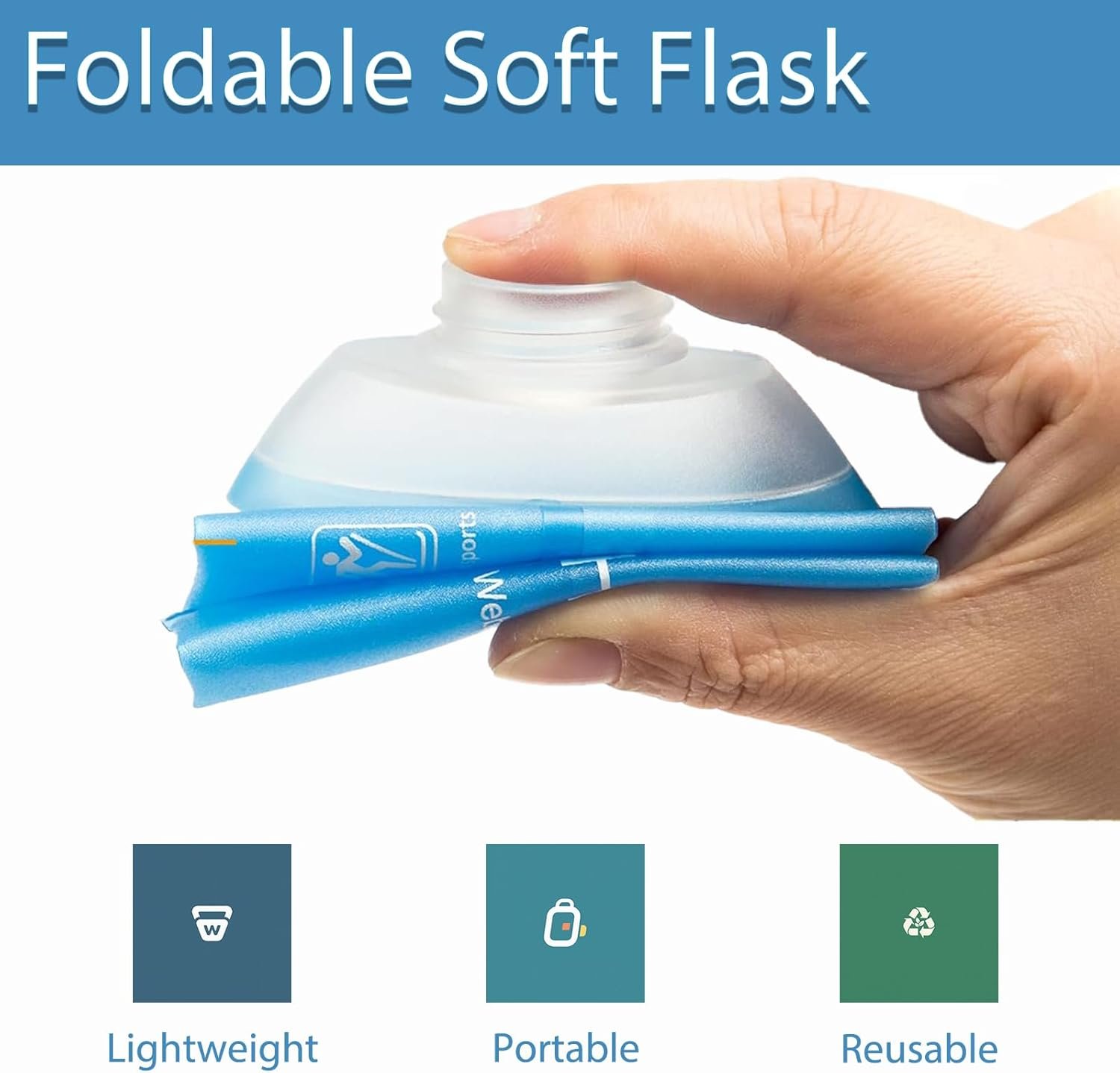 CLINTT 500ml Soft Flask, Foldable Running Water Bottle, TPU Folding Soft Water Flask, BPA-Free Collapsible Flask for Hydration Pack Running Vest, Cycling, Climbing, Hiking – 1Pcs, Blue