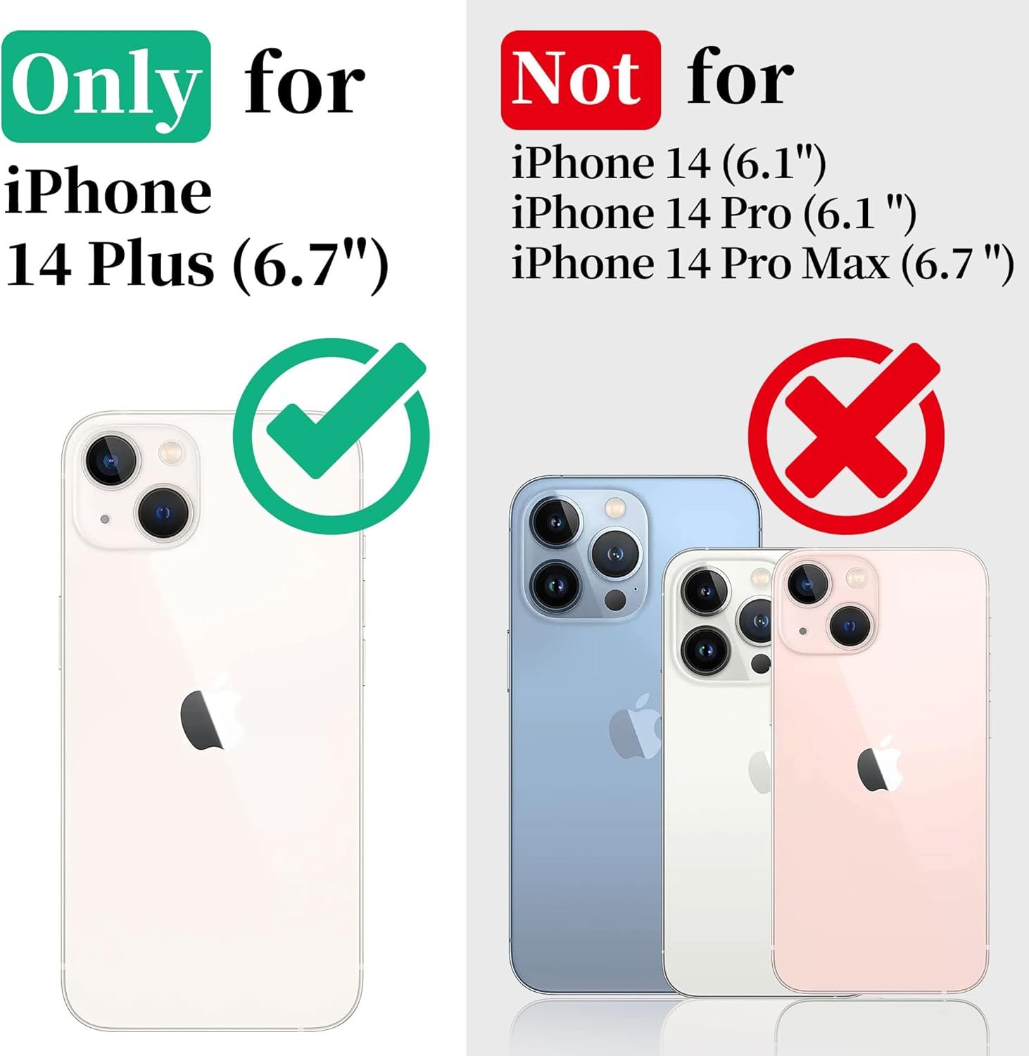 Only fits iPhone 14 Plus(6.7″). Does not fit 14 Pro/14 Pro Max/14. Please select the correct model.