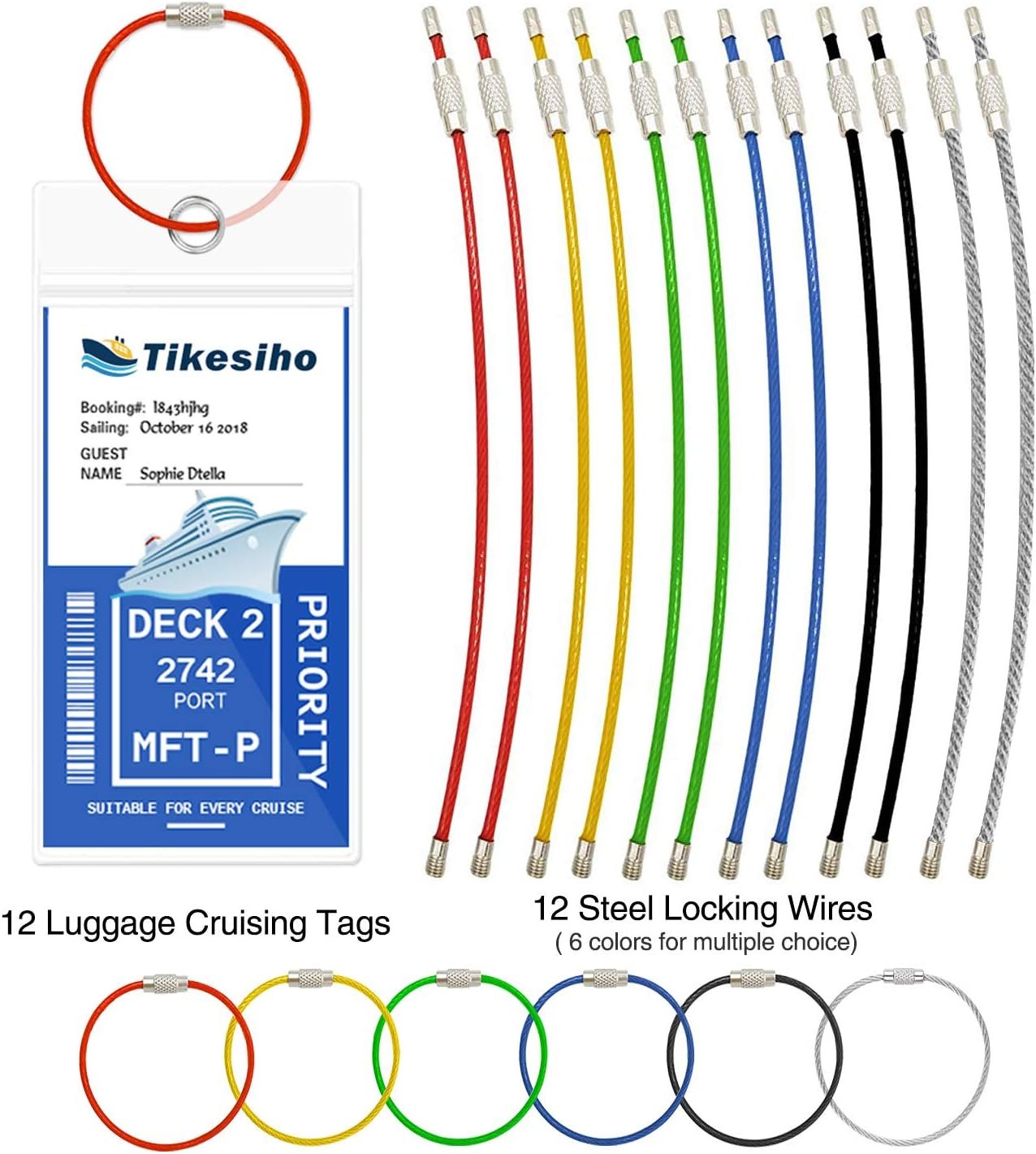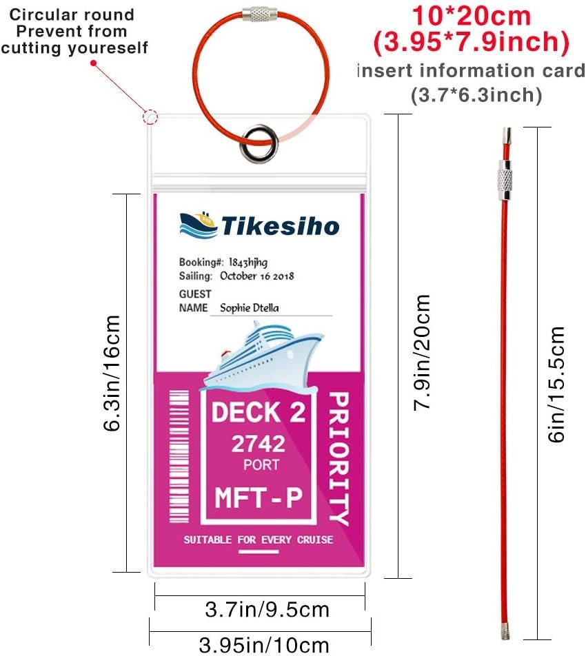Set Includes:12 Pack of Cruise Ship Luggage Tags (Normal). The normal cruise tags maximum insert size is 6.3″*3.7″(Outer Dimensions: 7.9″*3.95″).Additional colorful steel stainless loops,6 colors with 12 steel loops.Colorful Steel loops: The rainbow steel loops help you easy to find your luggage and be eye-catching.You could use different color steel loops to attach your luggage intend to distinguish different suitcase.