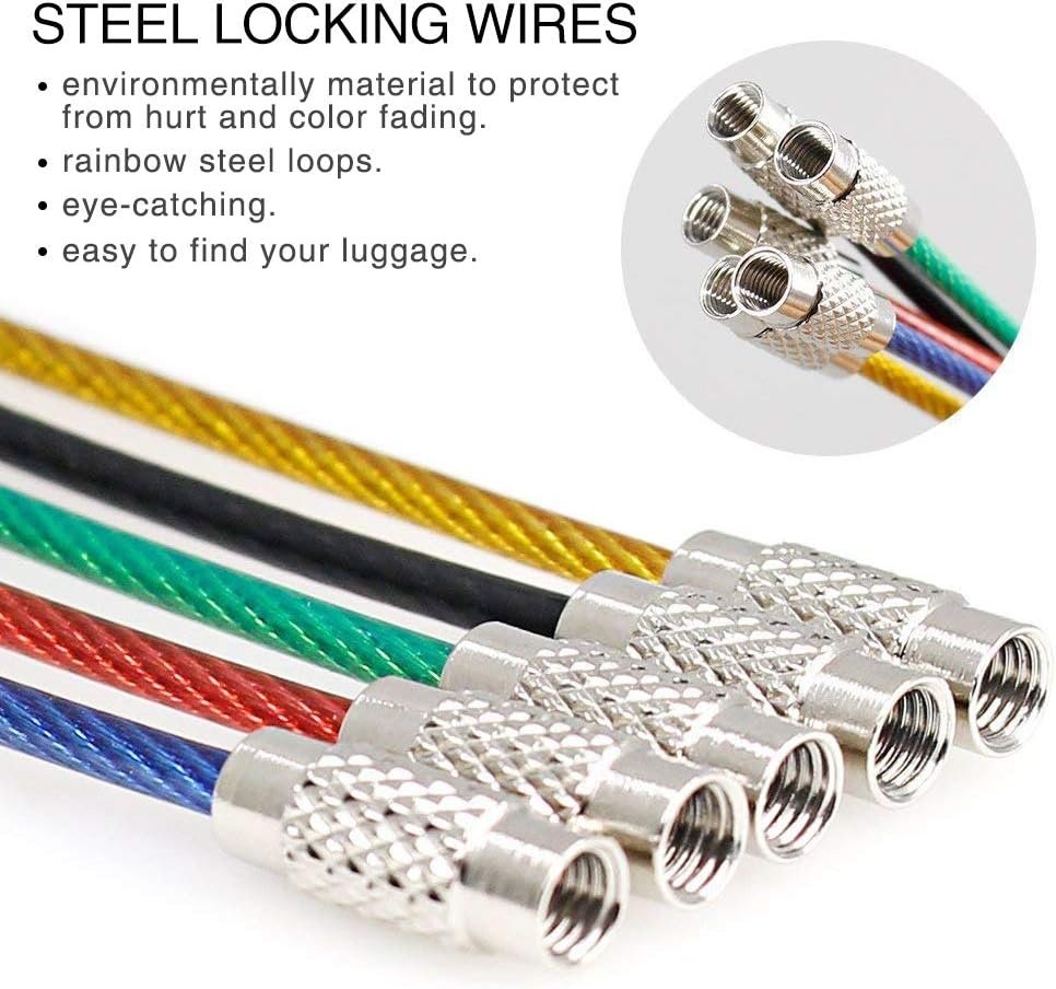 Colorful Steel loops: The rainbow steel loops help you easy to find your luggage and be eye-catching.You could use different color steel loops to attach your luggage intend to distinguish different suitcase.