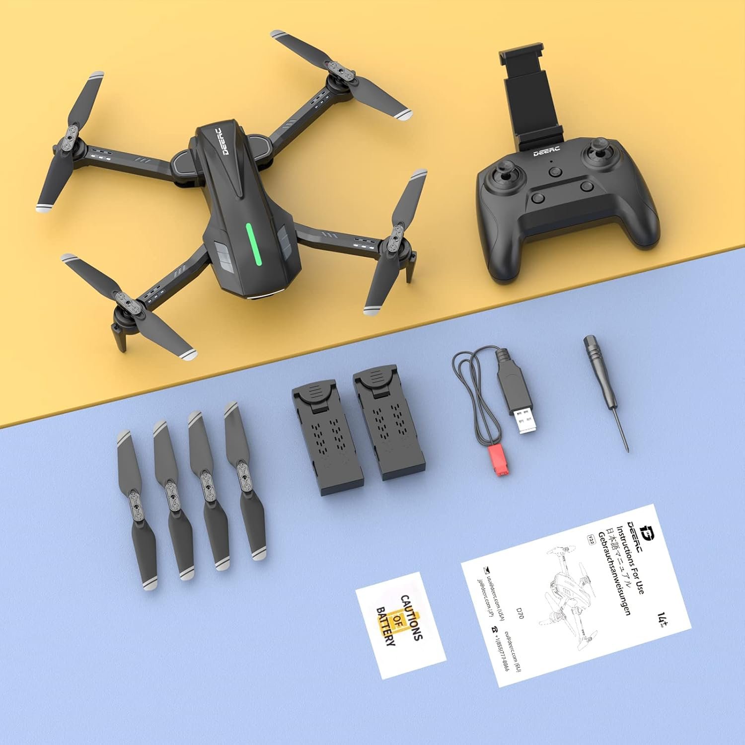 DEERC D70 Mini Drone with Camera,720P HD FPV Foldable Drones,2 Batteries,One Key Start,Headless Mode,Altitude Hold,360 Flip,Drone for Kids,Toys Gifts for Kids