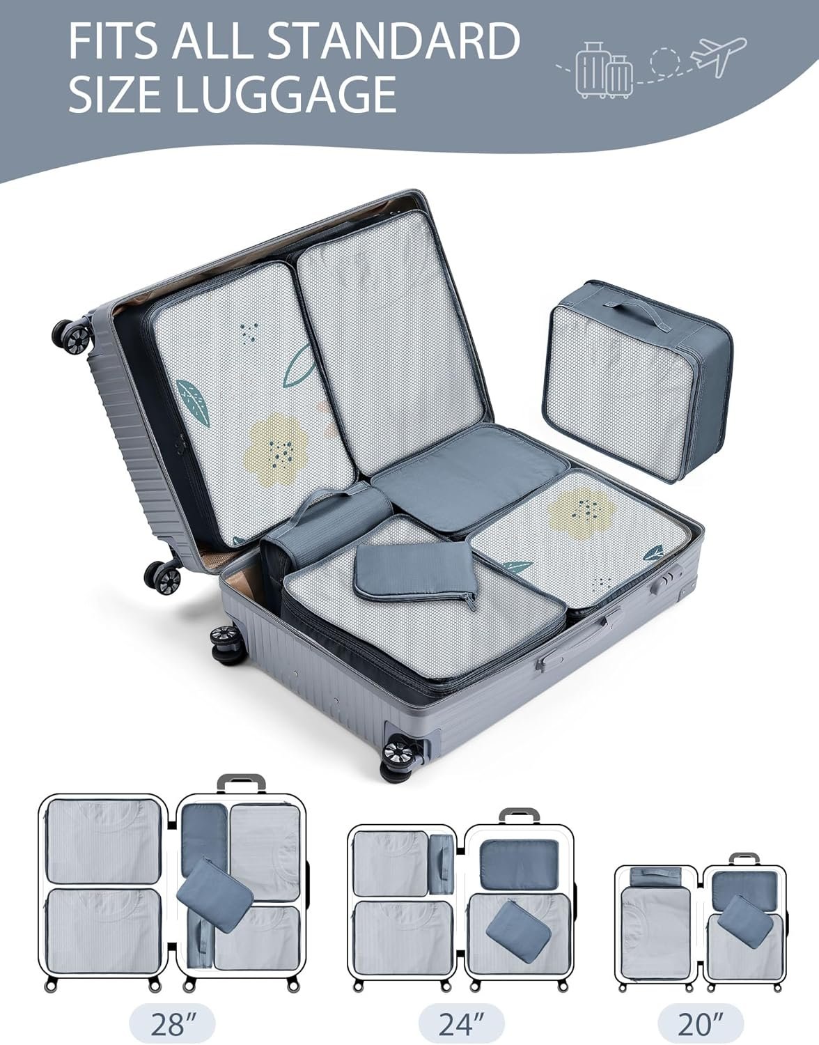 ▶【Made Travel Easy】Worried about overpacking? Always looking for a T-shirt in a pile of clothes? Have no idea when checking through and have to repack? All these can be well settled when you have this packing cubes.