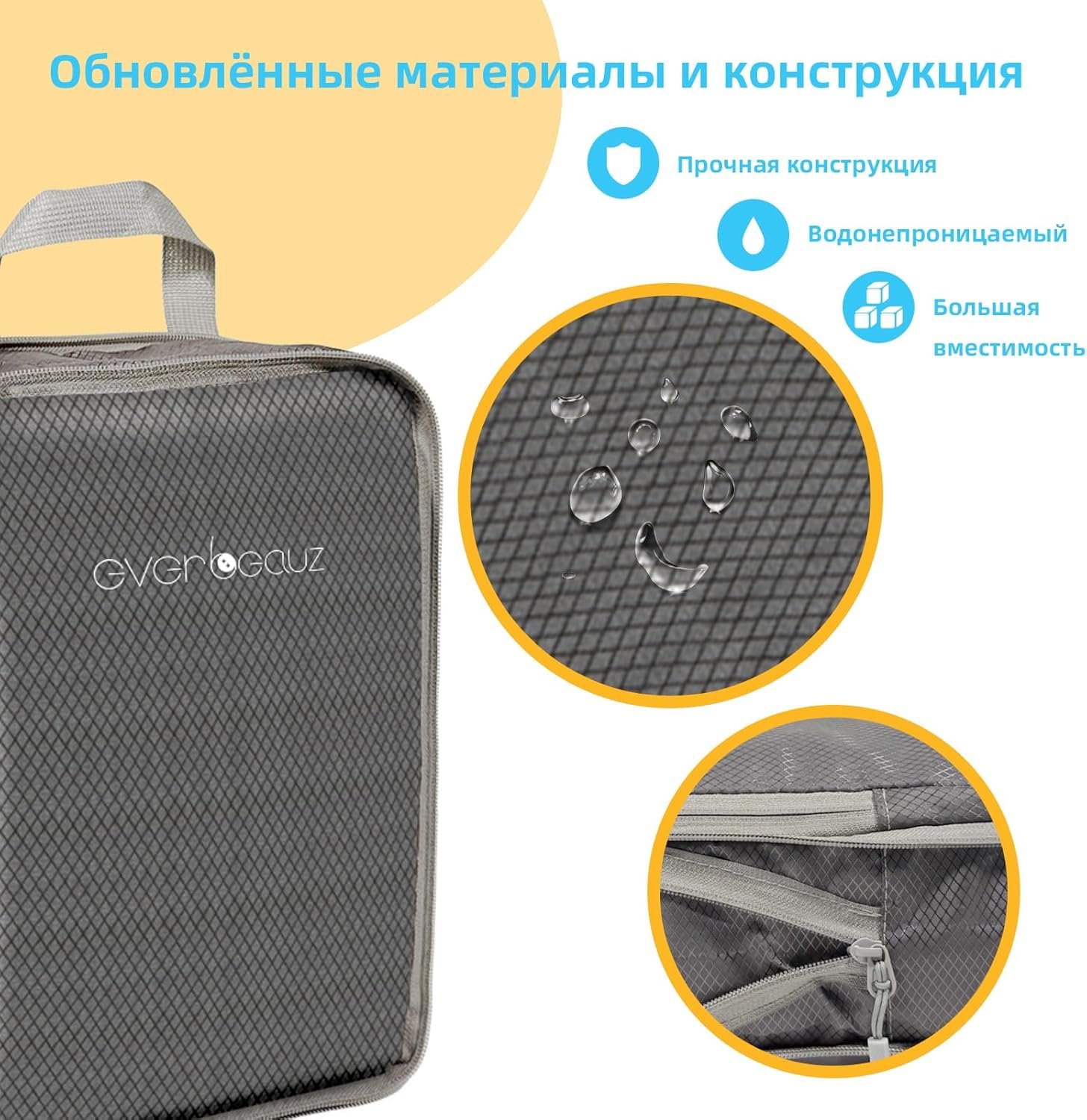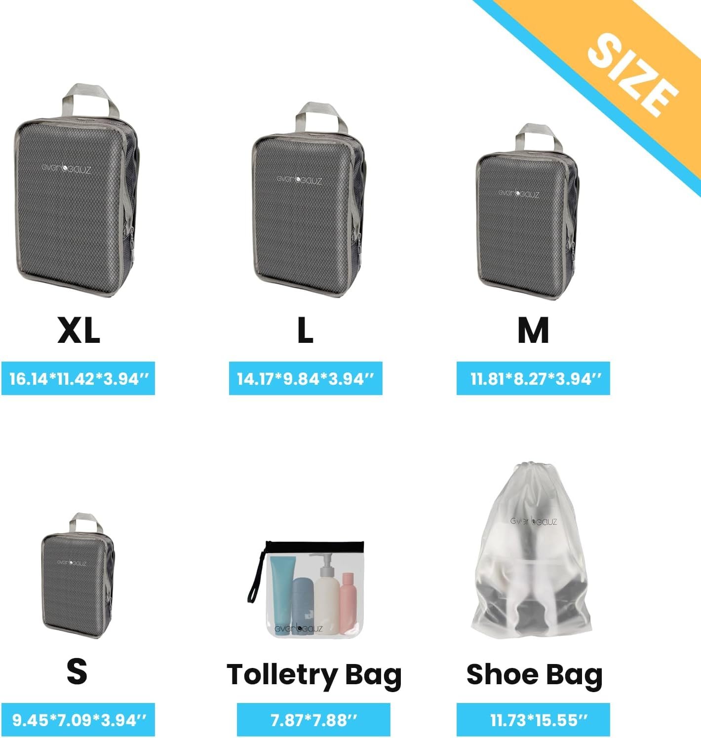 EVER BEAUZ Packing Cubes for Travel – Sturdy, Lightweight & Waterproof Compression. A Durable and Tidy Packing Solution for Easy Travel Organization. Includes Toiletry and Shoe Bags (Grey)