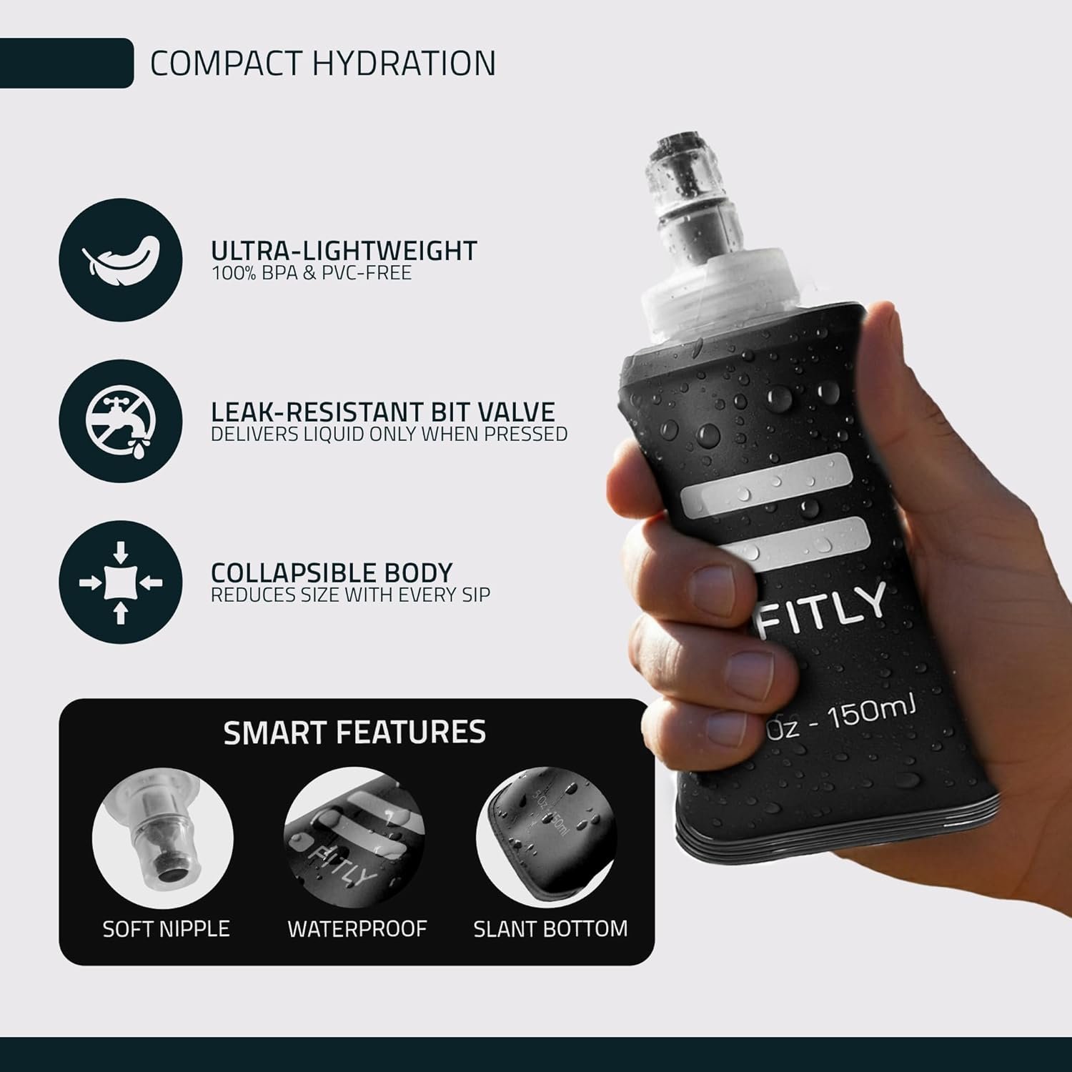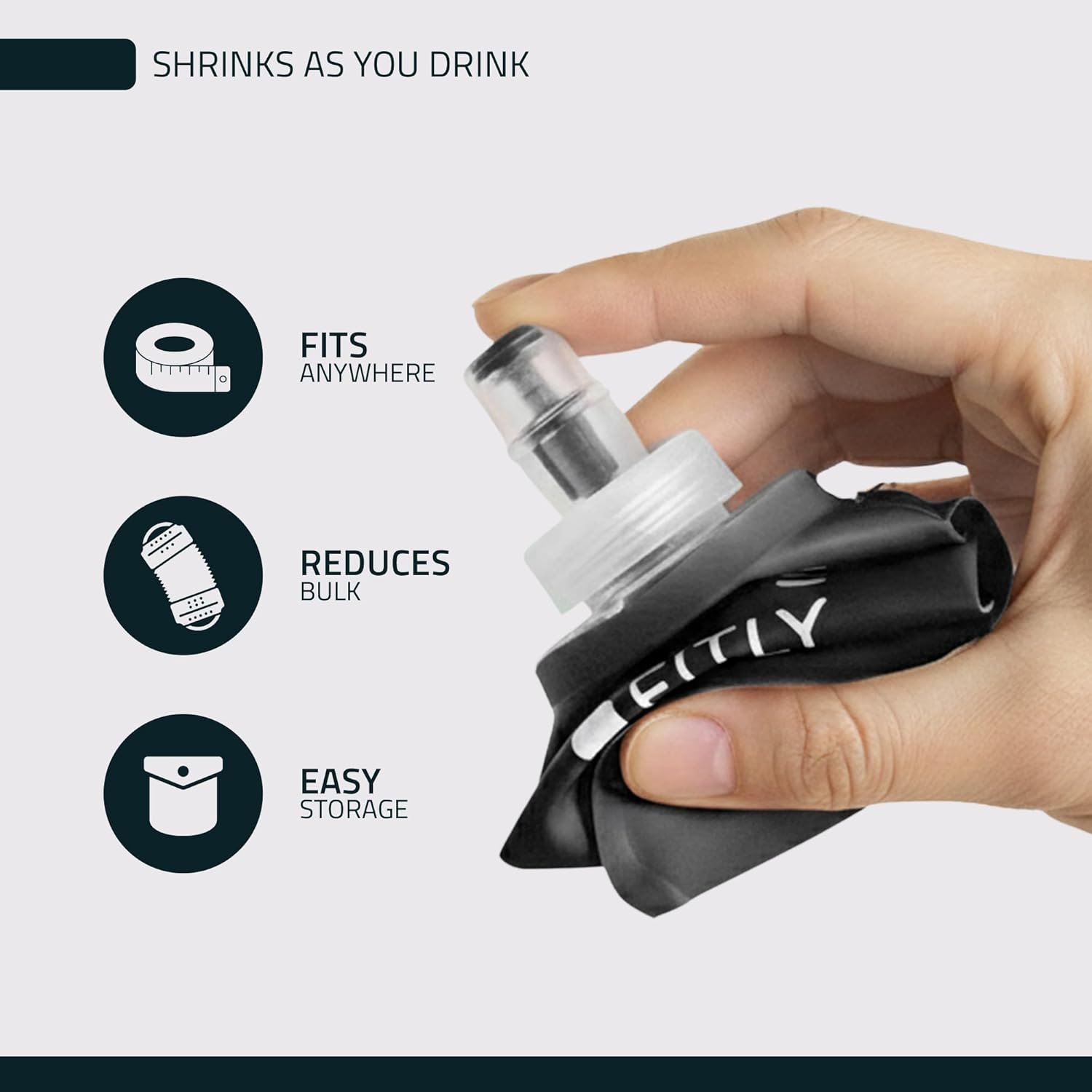 FITLY Soft Flask – Shrink As You Drink Soft Water Bottle for Hydration Pack – Folding Water Bottle Ideal for Running, Hiking, Cycling, Climbing & Rigorous Activity