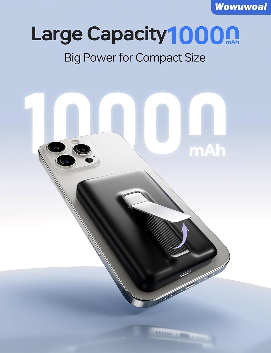 for Magsafe Portable Charger,10000mAh Wireless Magnetic Power Bank with USB C Charging and stand, Travel Essential for Magsafe Battery Pack Compatible with iPhone 17/air/16/15/14/13/12 Series