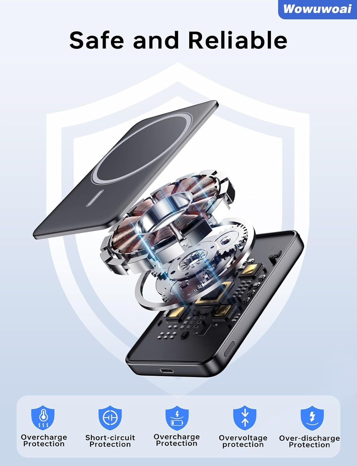 Advanced Safety & For MagSafe Ecosystem Ready: Charge with absolute confidence. Our intelligent chip guards against overcharging, overheating, overcharging, overcurrent, overvoltage, short circuits, and overheating. Built with a premium lithium-polymer battery, it’s rigorously tested for safety to ensures reliable, safe charging with this power bank every time. Due to long-distance transport, the power bank may arrive with low or no charge—please fully recharge it before first use to activate optimal performance