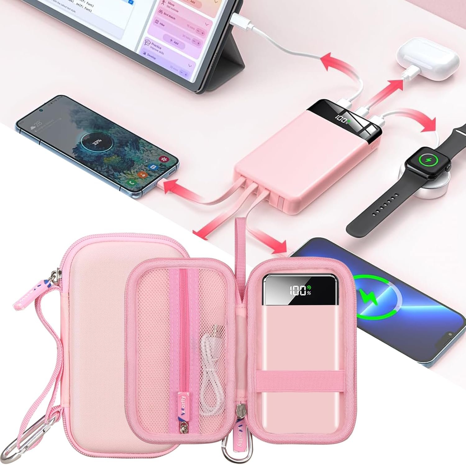 Hard Travel Case for SABANI for LOVELEDI for IAPOS for Pxwaxpy for OHOVIV for FOCHEW Portable Charger Power Bank, Storage Holder for Fast Charging Battery Protective Case (Pink)