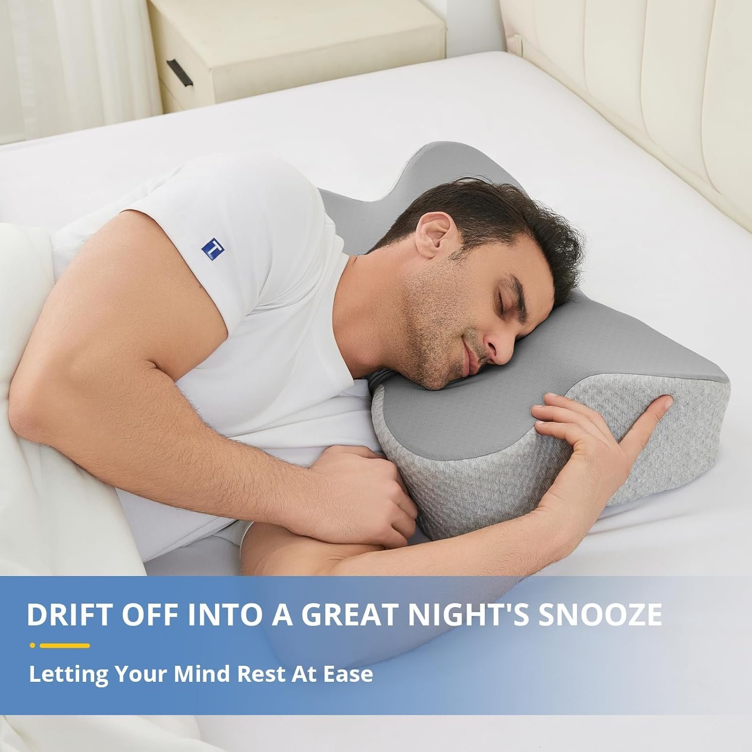 Ergonomic Support for Restful Sleep: Are you tired of waking up with tension? Our contour-designed memory foam side sleeper pillow adapts to your head, neck, and shoulders, providing balanced support for comfortable positioning. The curved shape follows your body’s natural lines, helping maintain comfort whether you sleep on your side, back, or stomach. Start your day feeling refreshed and revitalized!