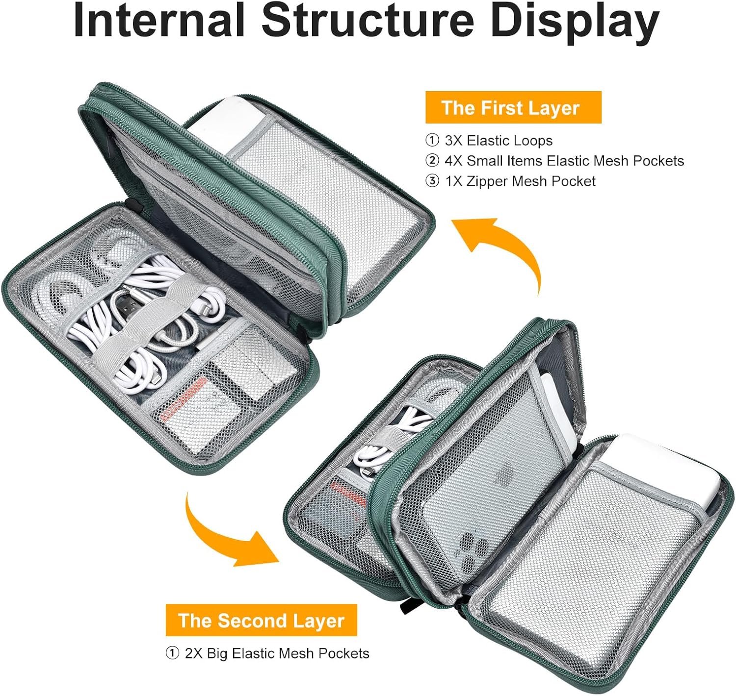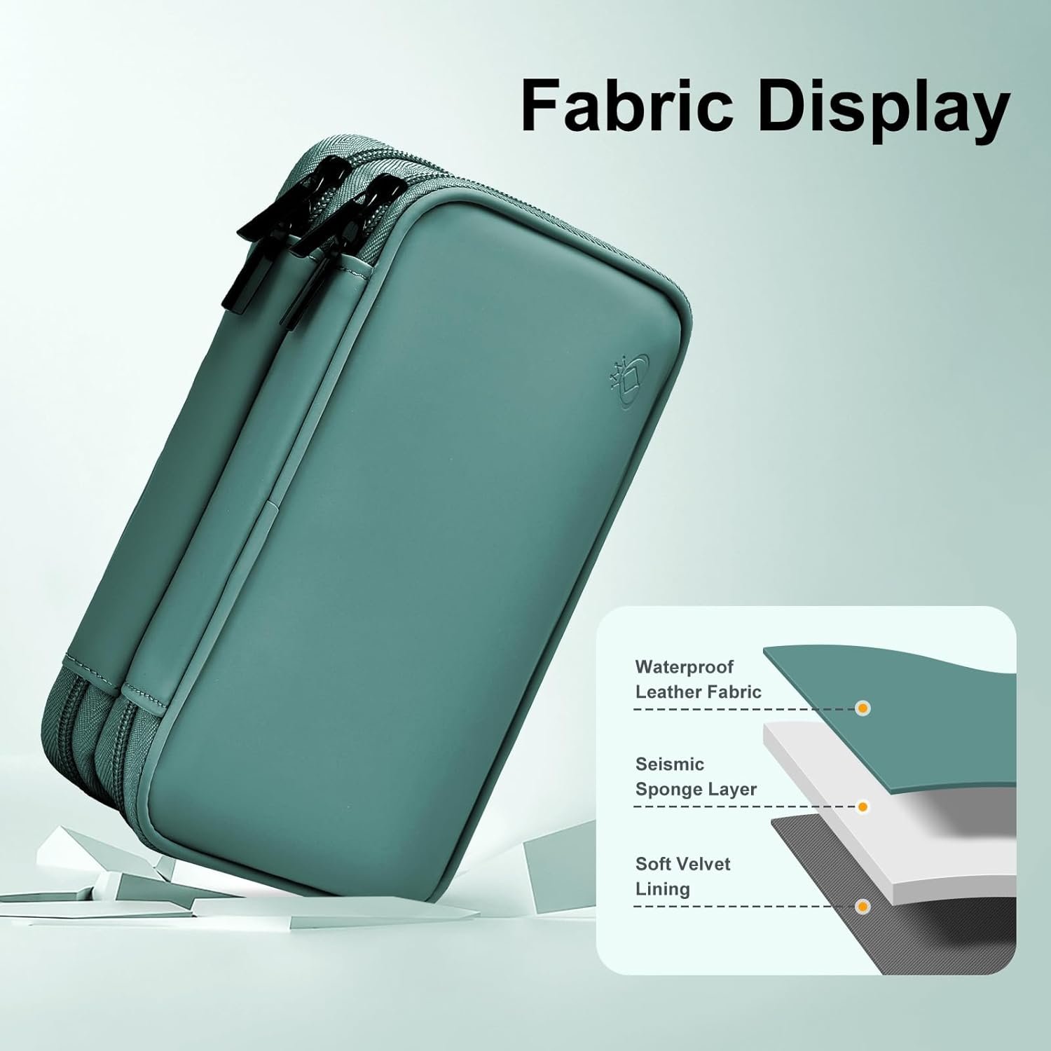 miloocul Portable Charger Organizer Travel Case Shockproof Power Bank case for Anker/Jackery/RAV/20000/30000mAh Power Bank Leather Waterproof Electronic Case for PowerCore (Deep Green, Double Layer)