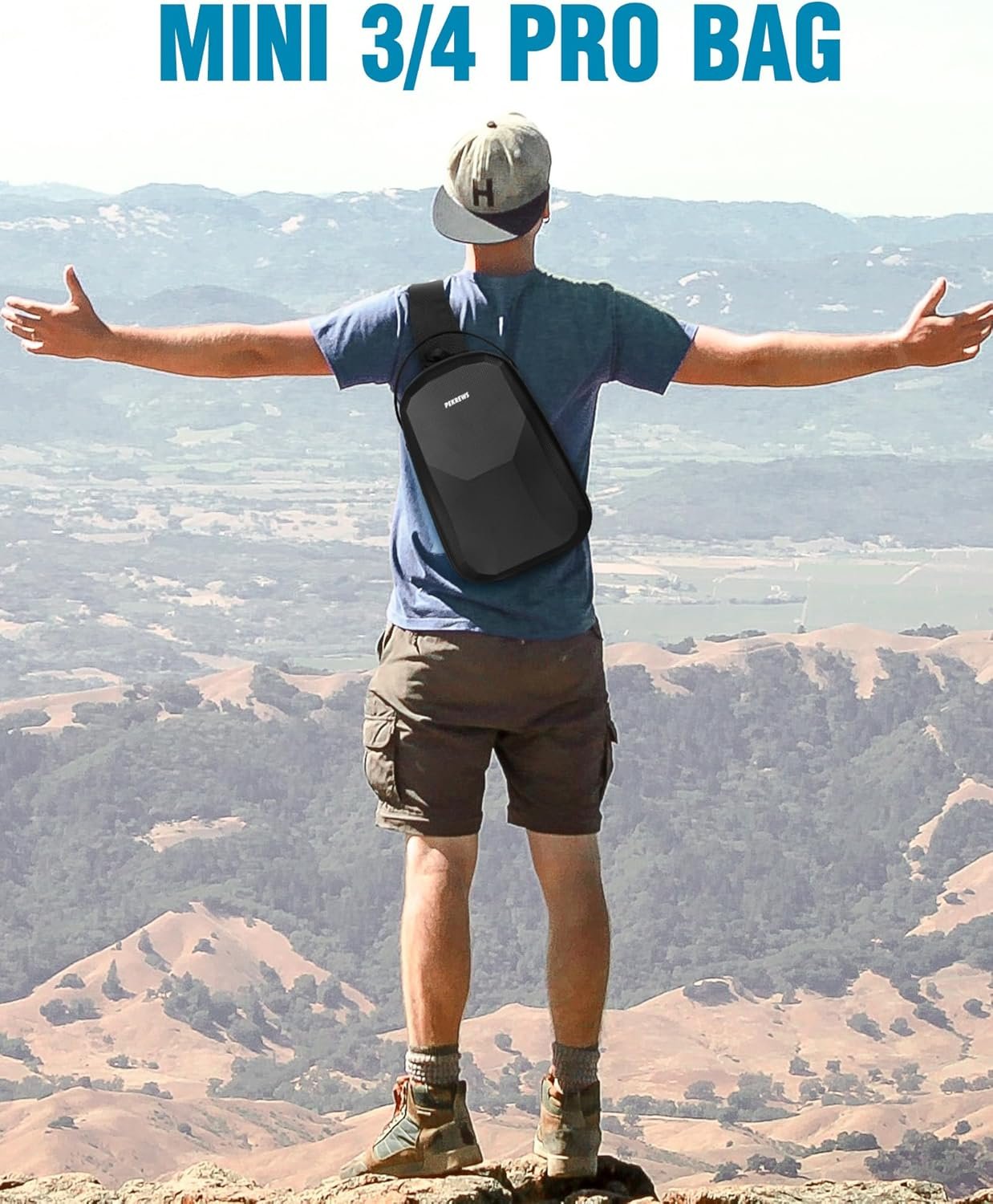 EASY TO CARRY: This Mini 3/4 Pro carry case is the perfect alternative to bulky cases. The air-mesh back panel ensures maximum comfort and support, while the adjustable padded sling strap allows for a hands-free, crossbody carry. The quick-release buckle attached to the sling strap lets you easily take off the Mini 3/4 Pro crossbody backpack, and the sturdy handle makes it simple to carry during hikes, trips, or travels. Ideal for those who want comfort, convenience, and flexibility on the go.