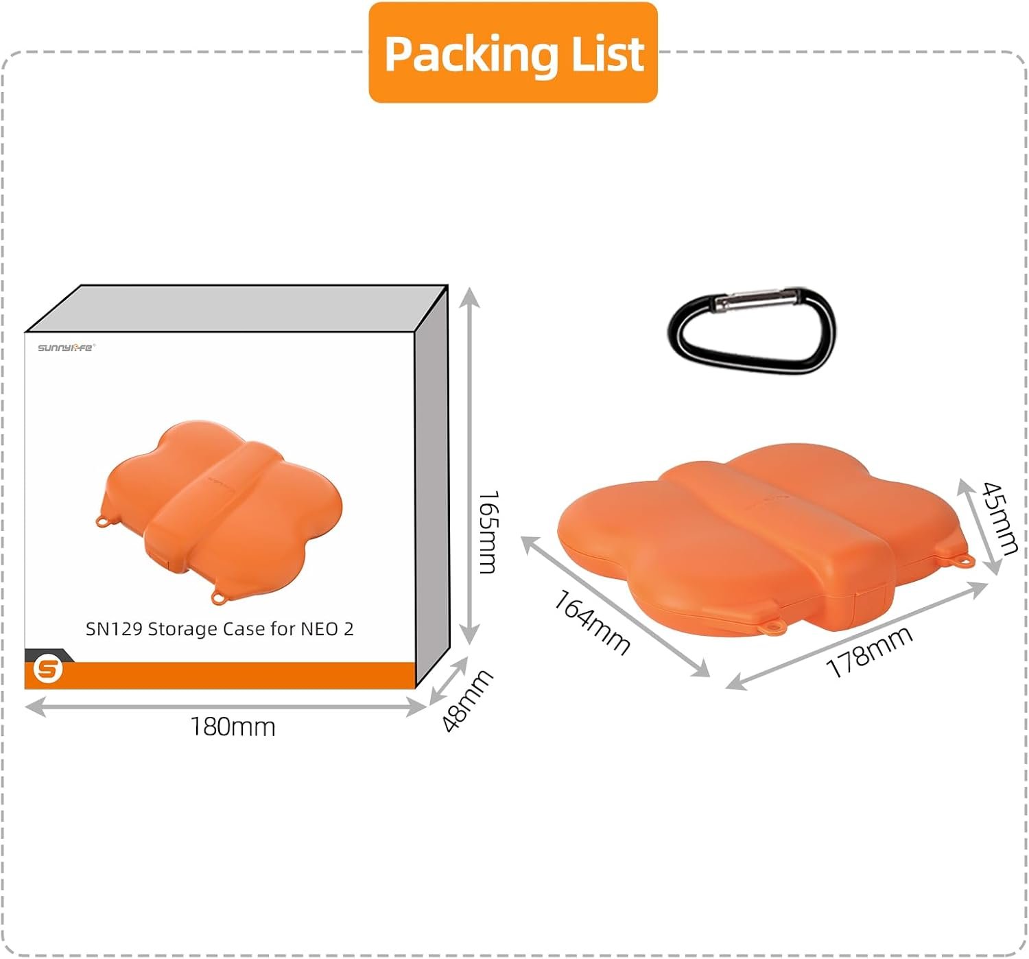 Package List: 1x Portable Travel Bag for DJI Neo 2 Drone, 1x Carabiner