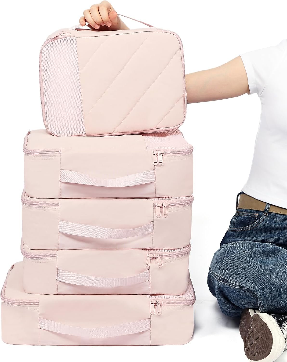 NISHEL 6 Set Packing Cubes for Travel, Luggage Organizer Bags with Shoe Bag, Lightweight, Durable Space Saver Bags Travel Essentials, Pink