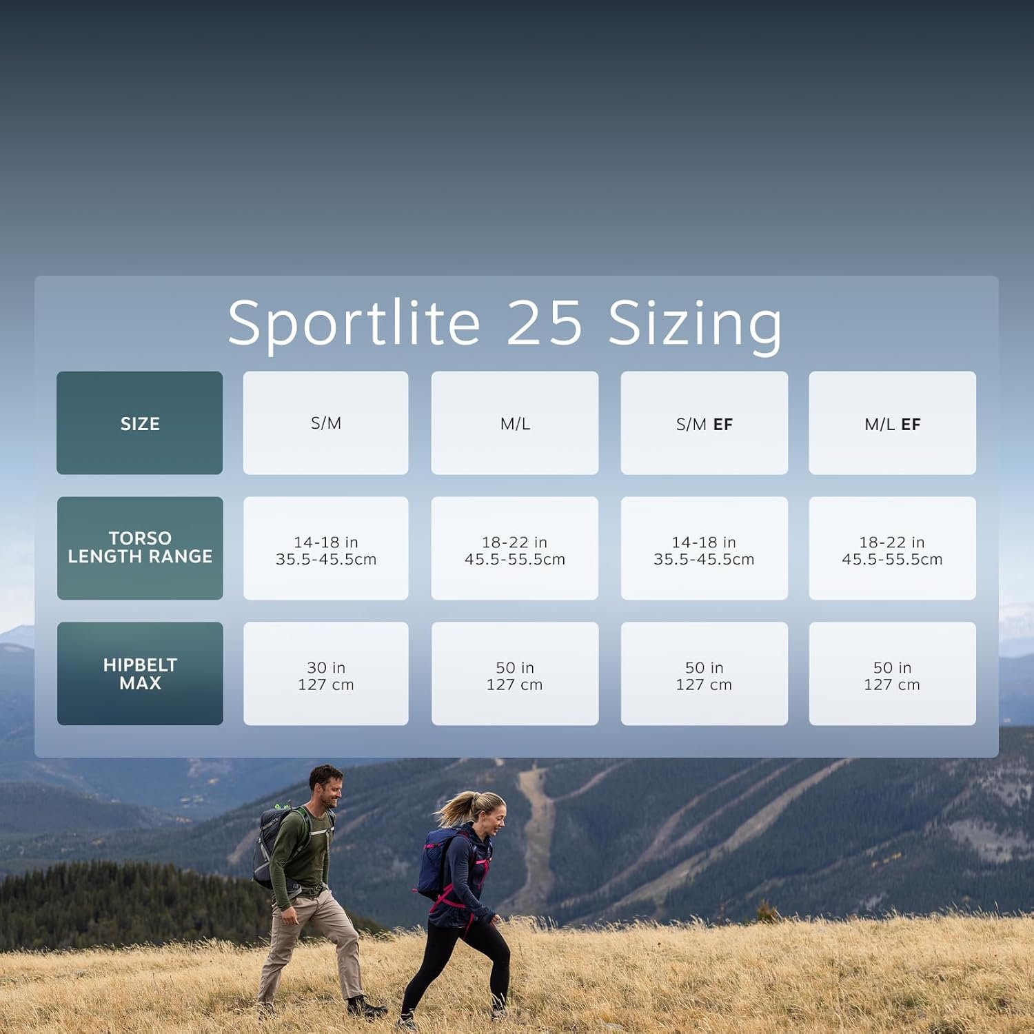 Confidently step out on the trail with the Sportlite 25, one of our most minimalist technical day packs. Carry all of your essentials with the convenience of panel-loading design and simple, clean internal organization. While this pack may look minimal, it’s not so stripped down that it’ll sacrifice comfort. An AirScape backpanel and suspension system moves with you dynamically and keeps your carry stable and ventilated. Made with 100% recycled materials.