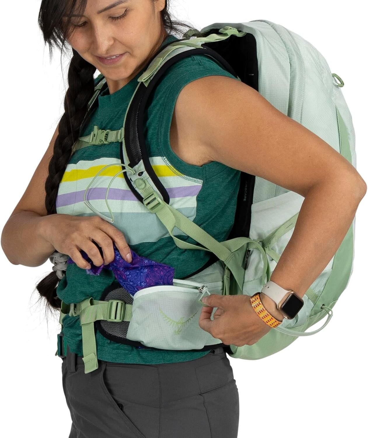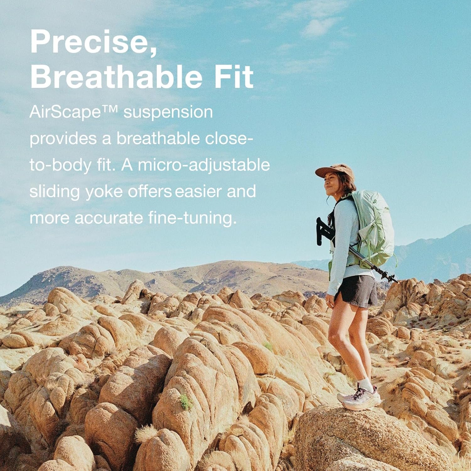 PRECISE & BREATHABLE FIT: Stay cool and supported with an AirScape backpanel that delivers a close-to-body, stable carry and improves airflow to reduce sweat while hiking or cycling. The adjustable sliding yoke and BioStretch hipbelt create a personalized women’s fit, keeping the bag stable and comfortable during hikes, bikes, day trips, and other adventures.