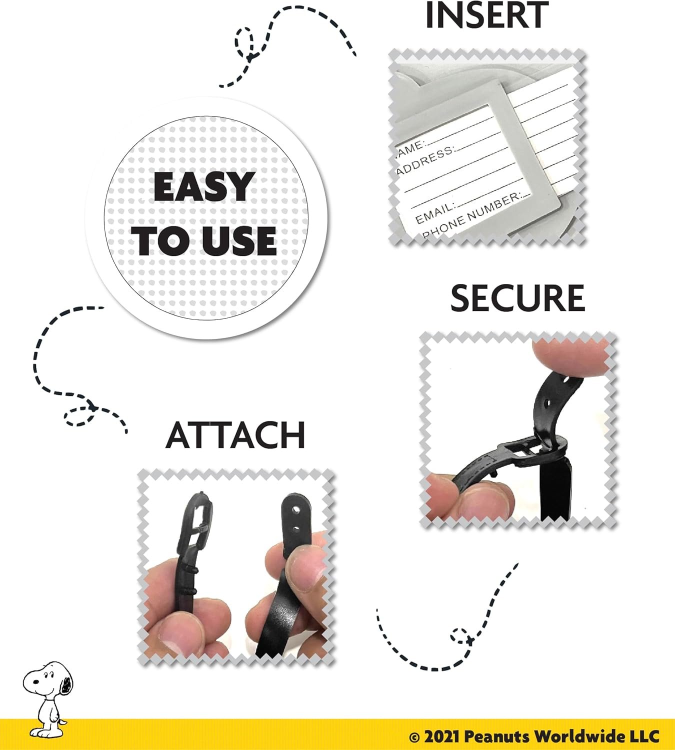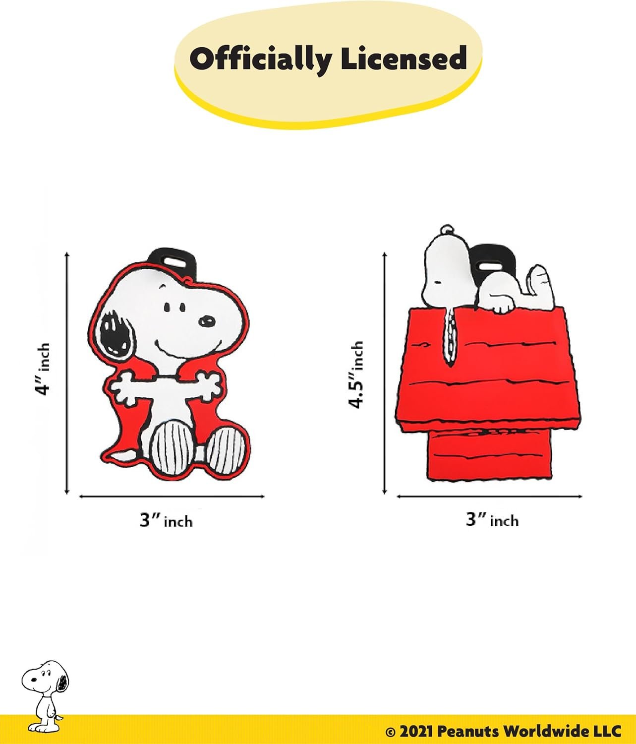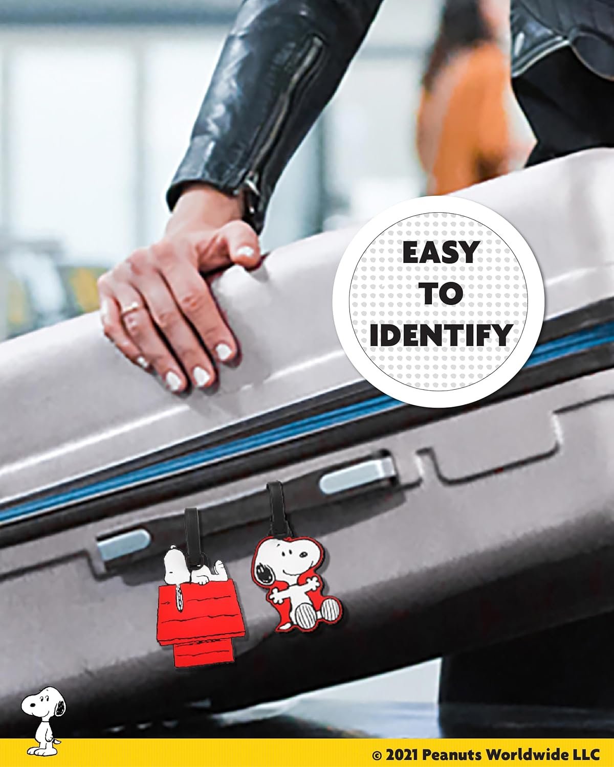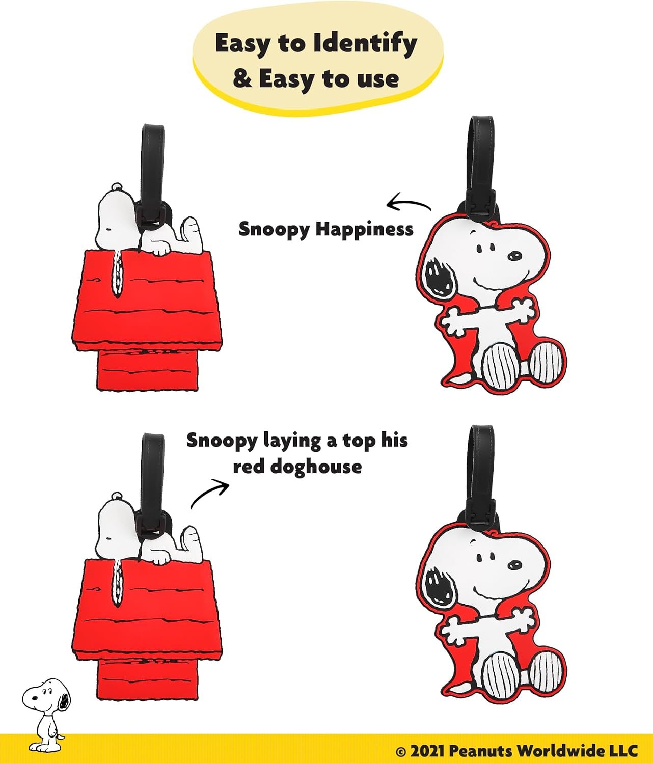 Officially Licensed Snoopy Accessories: A 4-pack of eye-catching Snoopy luggage tags for the entire family or for your suite of bags on a solo trip. Make your backpack and suitcase a standout with these authentic Peanuts Snoopy travel tags