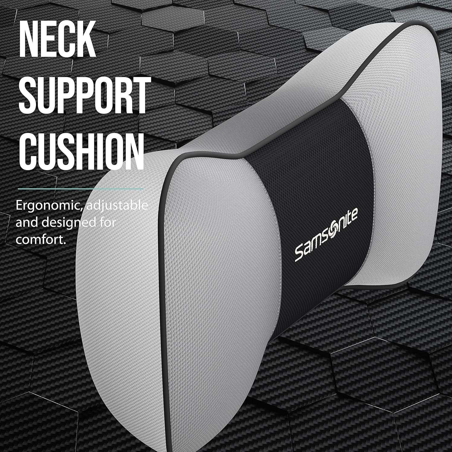 Samsonite Neck Pillow for Car – Ergonomic Memory Foam Headrest Cushion – Car Seat Support for Driving Comfort – Compact Neck Rest – Travel Pillow for Long Road Trip, Grey