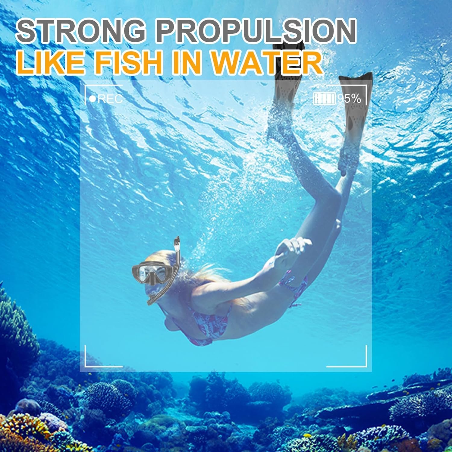 【Adjustable Swim Flippers Fits Most】The flexible and lightweight snorkel fins, providing excellent propulsion and maneuverability in the water for effortless exploration in waters of varying depths. There are adjustable strap and clip, which can be adjusted for a comfortable size and stayed fixed to avoid falling off.