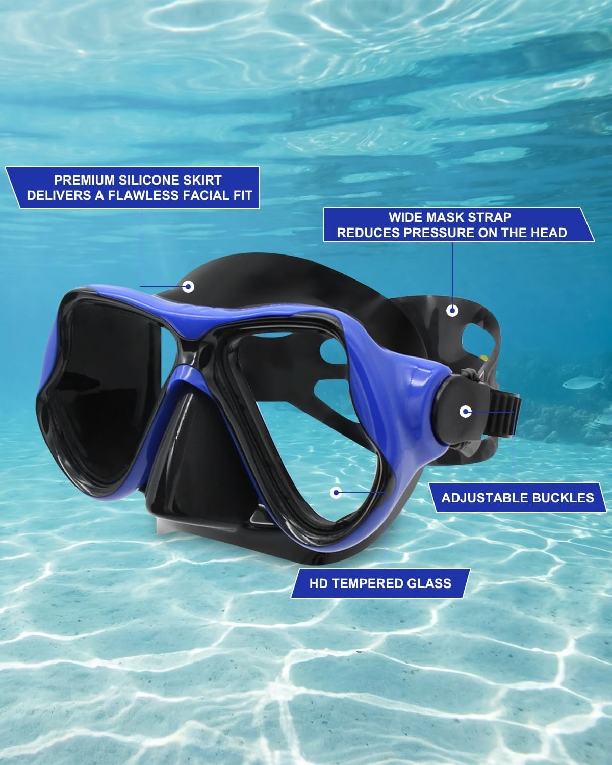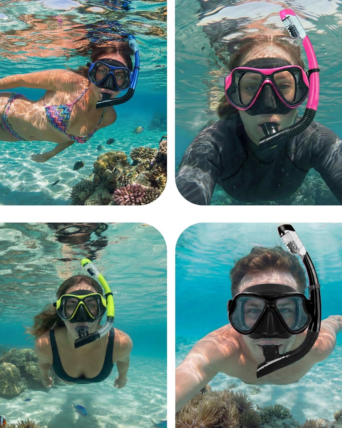 HD Panoramic View: The lens is made of tempered glass, featuring shatterproof and scratch-resistant safety performance. Combined with a 180° panoramic field of view, this snorkeling gear for adults delivers an immersive underwater experience.