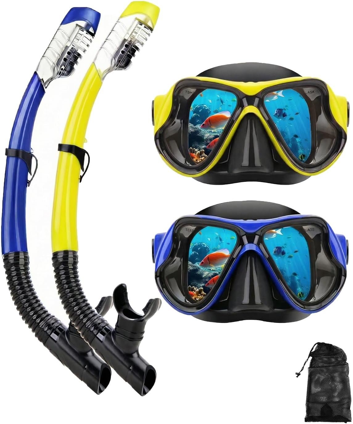 Snorkeling Gear for Adults Youth Kids, Dry-Top Snorkel Mask Set, Anti-Fog Scuba Diving Snorkle mask Set Adult, Panoramic Wide View Dive mask,Snorkeling Packages
