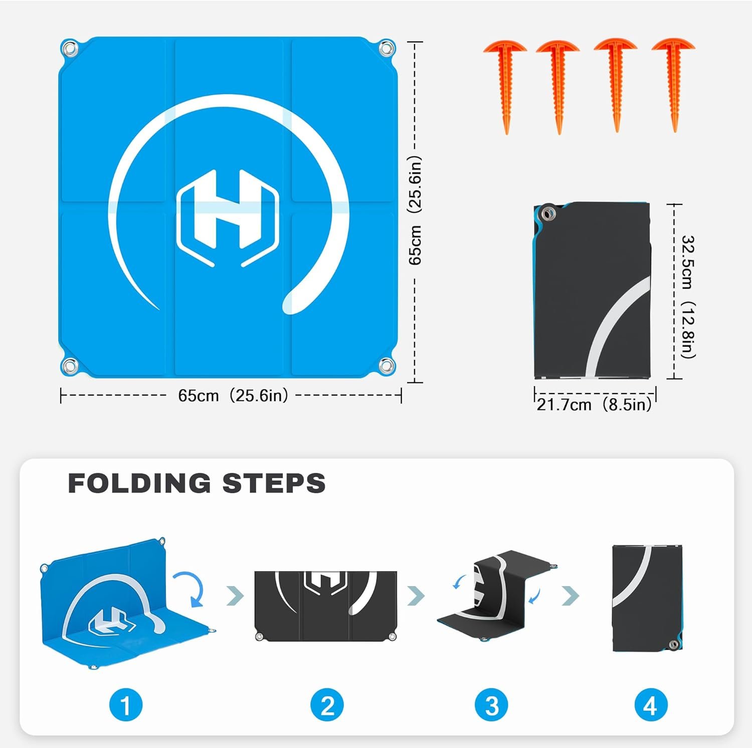 STARTRC PHOTO Large Drone Landing Pad Foldable 2×3 Fast-Fold, (26in/65cm) Double-Sided Waterproof Launch Pad, Weighted Helipad for DJI Air 3S/Mavic 4 Pro/Avata 2/Mavic 3 Pro/Mini 4k Drone Accessories, Blue-Gray