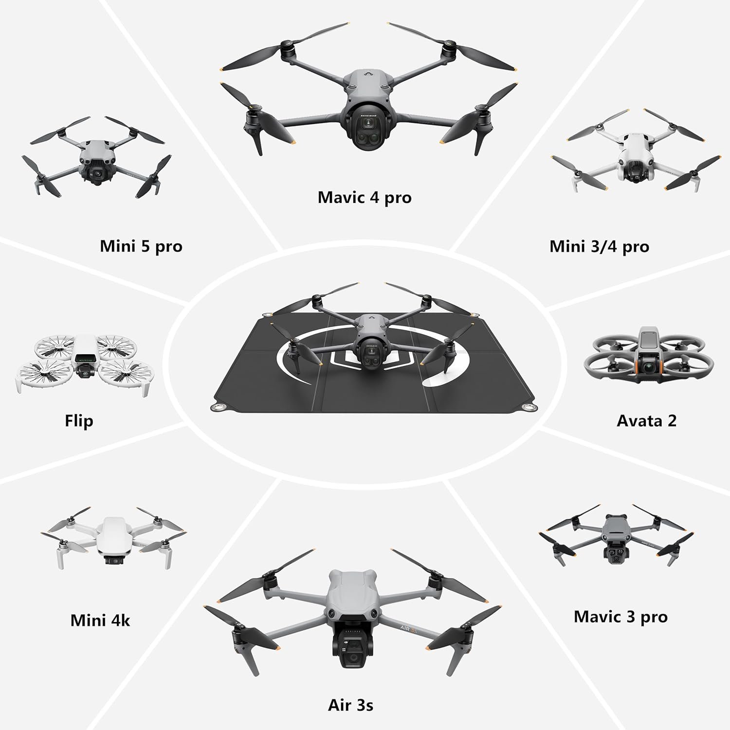 Universal Pad for Major Drones: Designed for DJI Mini 4K/Mini 5 pro/Avata 2/Mavic 4 Pro and most RC quadcopters. The drone launch pad ensures stable takeoff/landing on any terrain, from grass to uneven dirt