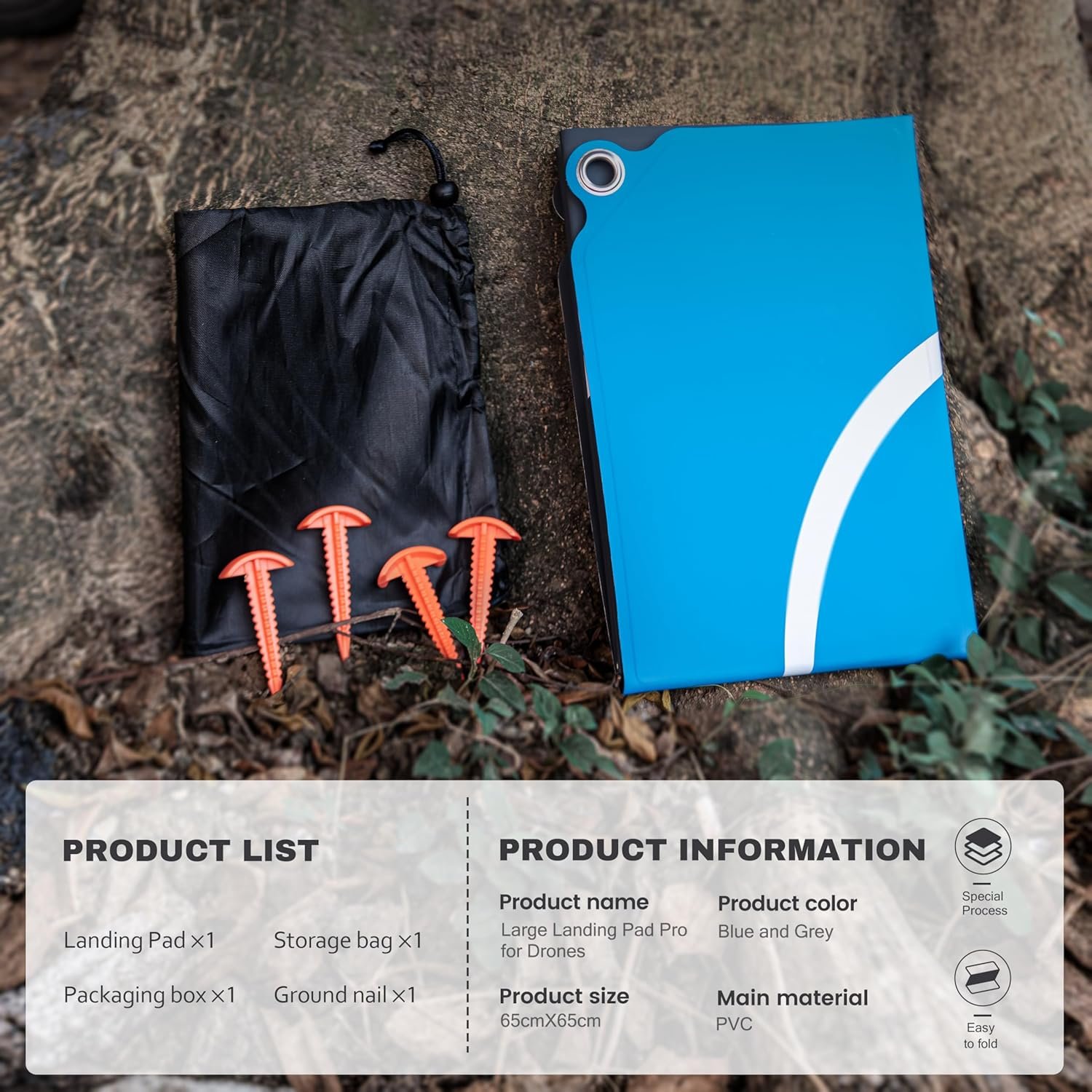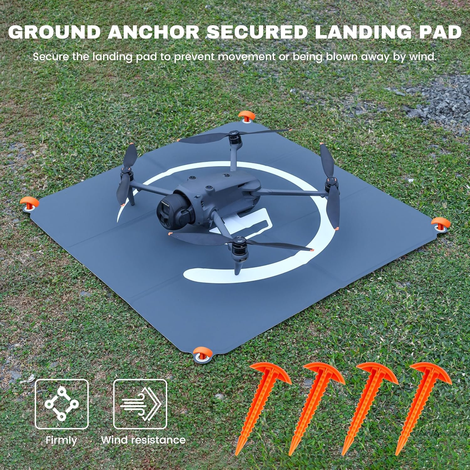 Durable Waterproof Material: Crafted from high-quality waterproof PU PVC, this drone landing pad offers double-sided durability with high-visibility colors for easy drone positioning. Stain-resistant and stable, it withstands mud, sand, and snow—just rinse with water to clean