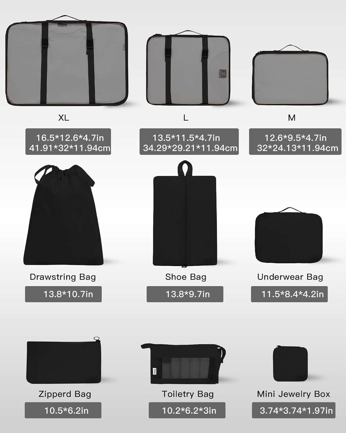 TRAILKICKER 9 Set Packing Cubes for Carry on Suitcase Travel Organizer Bags for Luggage Suitcase Organizer Bags Packing Cube Set for Packing Women Men (Black)