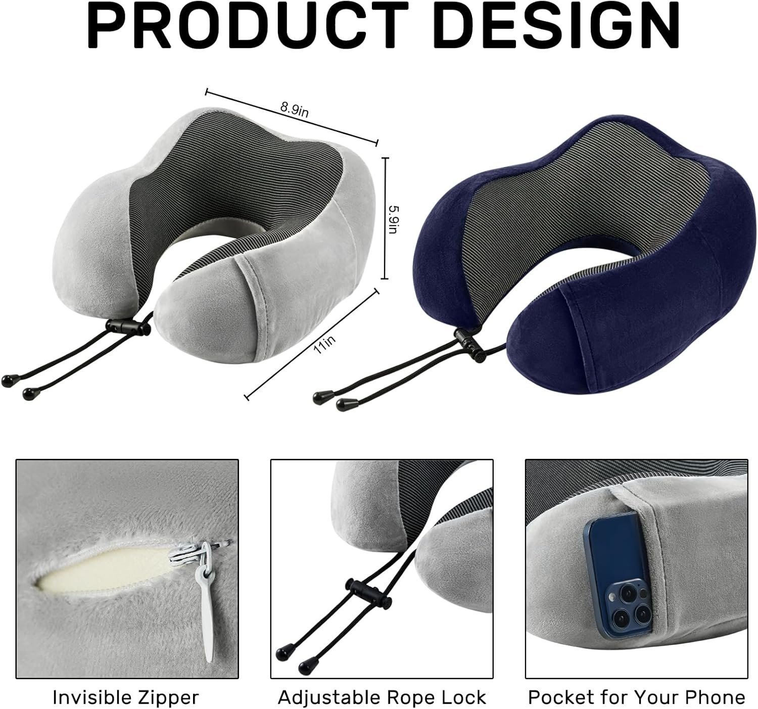Travel Pillow for Airplane-2 Pack Memory Foam Neck Pillows, Soft Support Travel Essentials for Travelling, Sleeping Rest, Car, Train and Home Use(Grey&Blue)