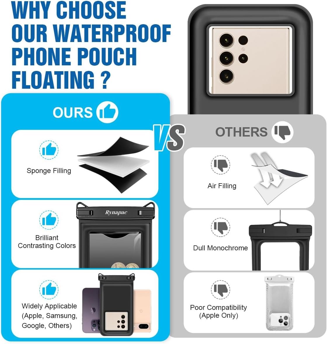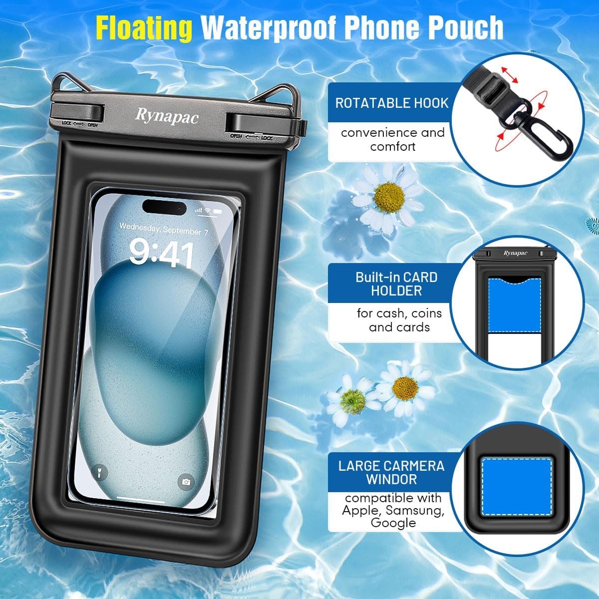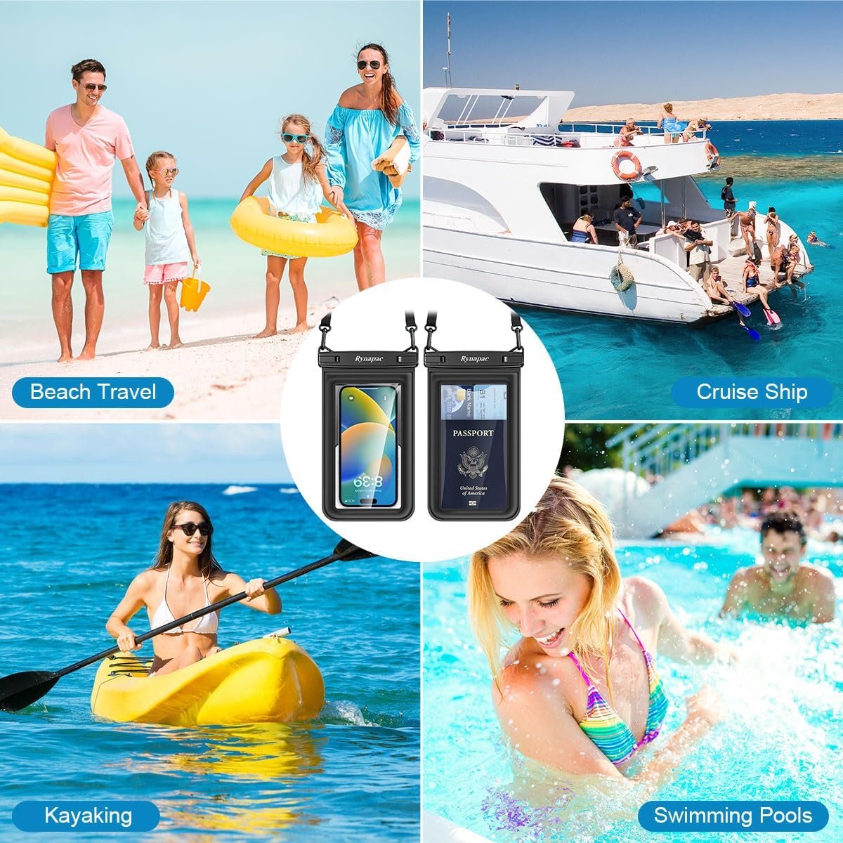 【Beach Vacation Essentials】- The Rynapac water proof phone pouch iphone is designed for outdoor activities such as beach, cruise ship, fishing, swimming in pools, sailing, skiing, boating, kayaking, snorkeling, tubing, rafting, and other waterpark activities, so that you can keep your device away from water, dust, and snow, and enjoy life to the fullest