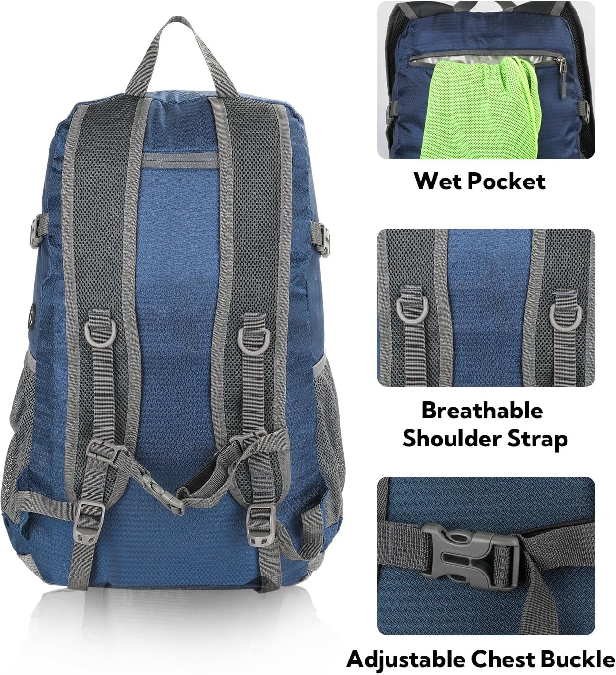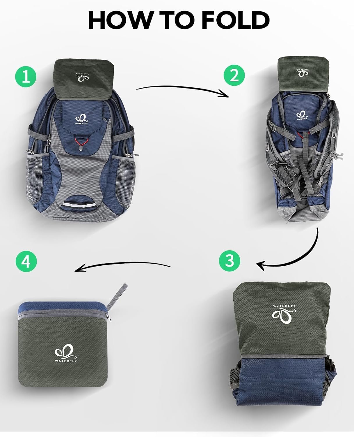 WATERFLY Lightweight Packable Hiking Backpack: 30L Foldable Travel Daypack Ultralight Camping Day Pack for Woman Man